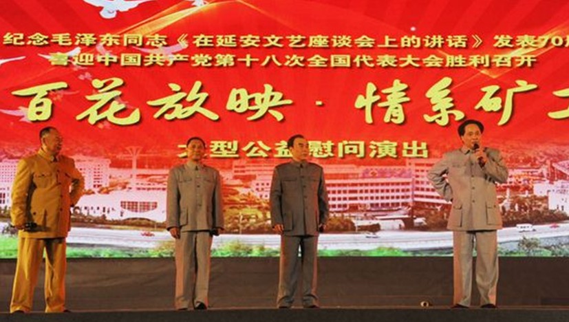 6月28日晚,在紀念毛澤東同志《在延安文藝座談會上的講話》發表70周年,喜迎建黨91周年和黨的十八大召開之際,由中國文聯,中國影協,山西省文聯和西山煤電集團公司聯合舉辦的百花放映情系礦工大型公益慰問演出暨西山煤電集團公司紀念建黨91周年、創先爭優活動黨風廉政建設表彰大會,在西山煤電集團隆重舉行。