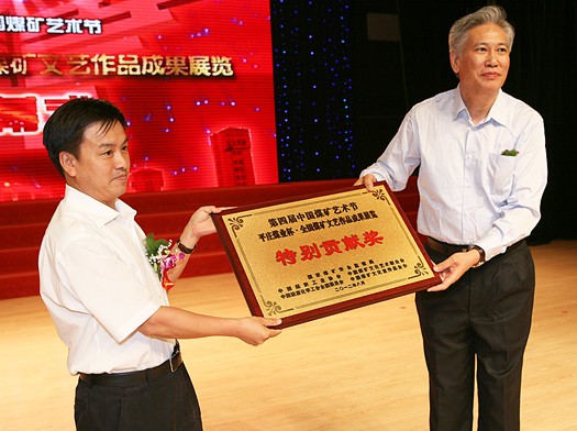 開幕式上,第四屆中國煤礦藝術節組委會向平莊煤業集團公司頒發特別貢獻獎,中國煤礦文聯、中國煤礦文化宣傳基金會為平莊藏書基地授牌。