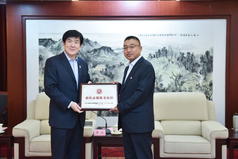 中國文聯(lián)黨組書記、副主席李屹(左)向同煤集團(tuán)文體發(fā)展中心主任、文藝志愿者協(xié)會主席楊占先(右)頒發(fā)“最佳志愿服務(wù)組織”獎牌