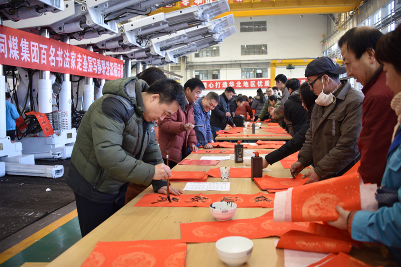 “走基層 送祝福”書寫春聯(lián)活動。在每年的春節(jié)前夕,來自集團(tuán)公司的100名書法家,分成10個小組,深入到朔州煤電公司、漳澤電力公司等30多個基層單位,開展“走基層 送祝福”書寫春聯(lián)活動,給傳統(tǒng)新年增添了幾分歡樂與祥和,營造了溫馨、祥和的節(jié)日氛圍。三年來,先后為生產(chǎn)一線的員工現(xiàn)場揮毫潑墨,書寫了36200余幅(副)寫滿吉祥話語的春聯(lián)及筆法各異、氣象萬千的“福”字,為員工群眾送去了新春的祝福。