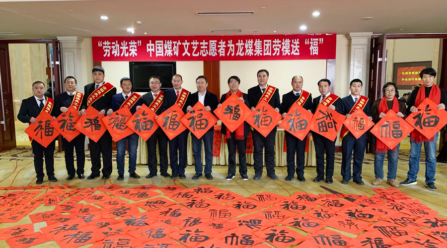 文藝志愿者們向龍煤集團勞模代表送“福”字