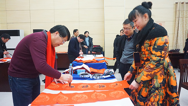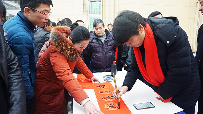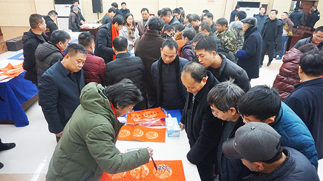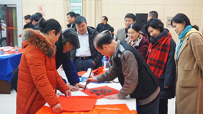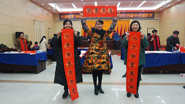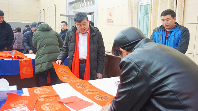 文藝志愿者們?yōu)樨S城礦區(qū)職工書寫春聯(lián)和“福”字