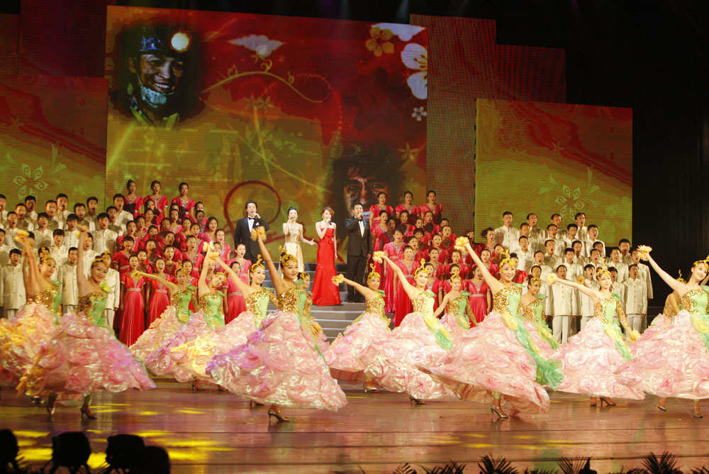 演出在新創(chuàng)合唱《太陽花開》婉轉(zhuǎn)動(dòng)人的音樂聲中拉開大幕,來自煤炭企業(yè)的110名職工唱出全國500多萬礦工身處和諧社會的喜悅心情。《太陽花開》的詞作者是著名煤礦作家張枚同,由他作詞的歌曲《年輕的朋友來相會》唱遍了祖國大江南北。老作家已退休多年,但他心中永遠(yuǎn)燃燒著一團(tuán)火,這團(tuán)火就是他永遠(yuǎn)的礦山情。