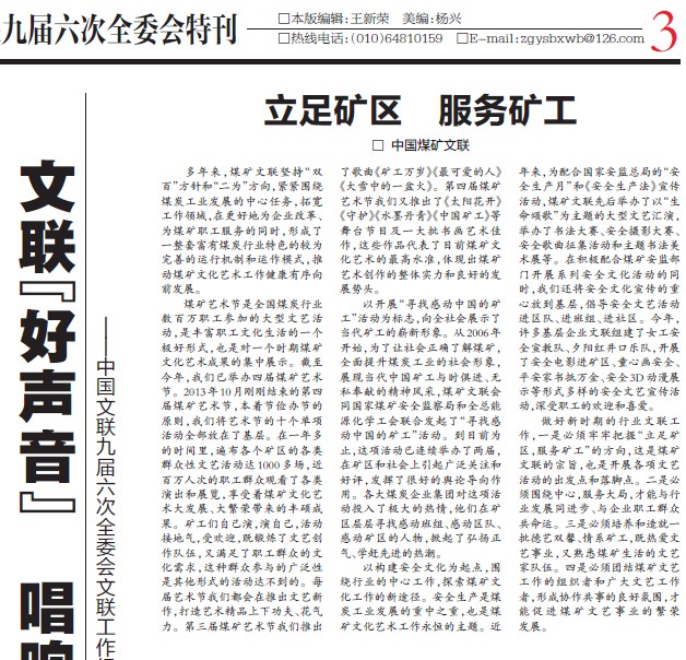 多年來(lái),煤礦文聯(lián)堅(jiān)持雙百方針和二為方向,緊緊圍繞煤炭工業(yè)發(fā)展的中心任務(wù),拓寬工作領(lǐng)域,在更好地為企業(yè)改革、為煤礦職工服務(wù)的同時(shí),形成了一整套富有煤炭行業(yè)特色的較為完善的運(yùn)行機(jī)制和運(yùn)作模式,推動(dòng)煤礦文化藝術(shù)工作健康有序向前發(fā)展。