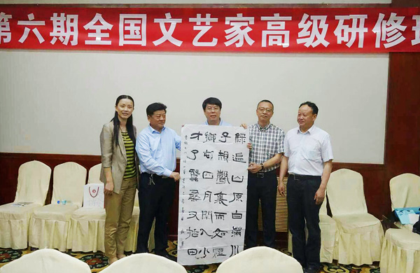 5月25日,第六期全國文藝家高級研修班在貴陽結業。 結業式上,江西省電影家電視藝術家協會駐會副主席張躍明以收獲和感激來概括此次研修班。他認為,心靈受到洗禮,收獲了朋友。中國音樂家協會理事、陜西演藝集團副總經理劉慶表示大家對貴州的秀美山川、紅色土地依依不舍,并表示將以此次高研班的經歷為素材,為多彩貴州寫一部三樂章的交響樂。遼寧省評論家協會副主席張穎認為學有所獲,學有所得,學有所用。內蒙古自治區美術家協會副主席董從民、中國煤礦書法家協會副主席盛軍還代表全體學員向研修院、貴州省文聯贈送精心創作的書畫作品。