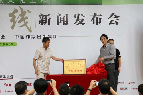中國作協(xié)副主席何建明、文藝報總編輯梁鴻鷹為中國詩歌網(wǎng)揭牌