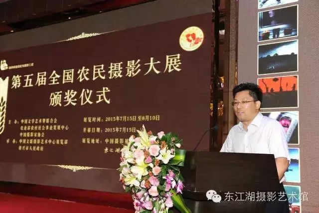 7月15日上午8點30分,由中國文學藝術界聯(lián)合會、中國攝影家協(xié)會聯(lián)合主辦,農(nóng)業(yè)部農(nóng)村社會事業(yè)發(fā)展中心、中國文聯(lián)攝影藝術中心展覽部、湖南省資興市人民政府共同承辦的“第五屆全國農(nóng)民攝影大展”頒獎儀式在資興市雄森豪庭酒店宴會廳A區(qū)和東江湖攝影藝術館隆重舉行;10點整,第五屆全國農(nóng)民攝影大展獲獎作品展覽開幕式在東江湖攝影藝術館舉行。