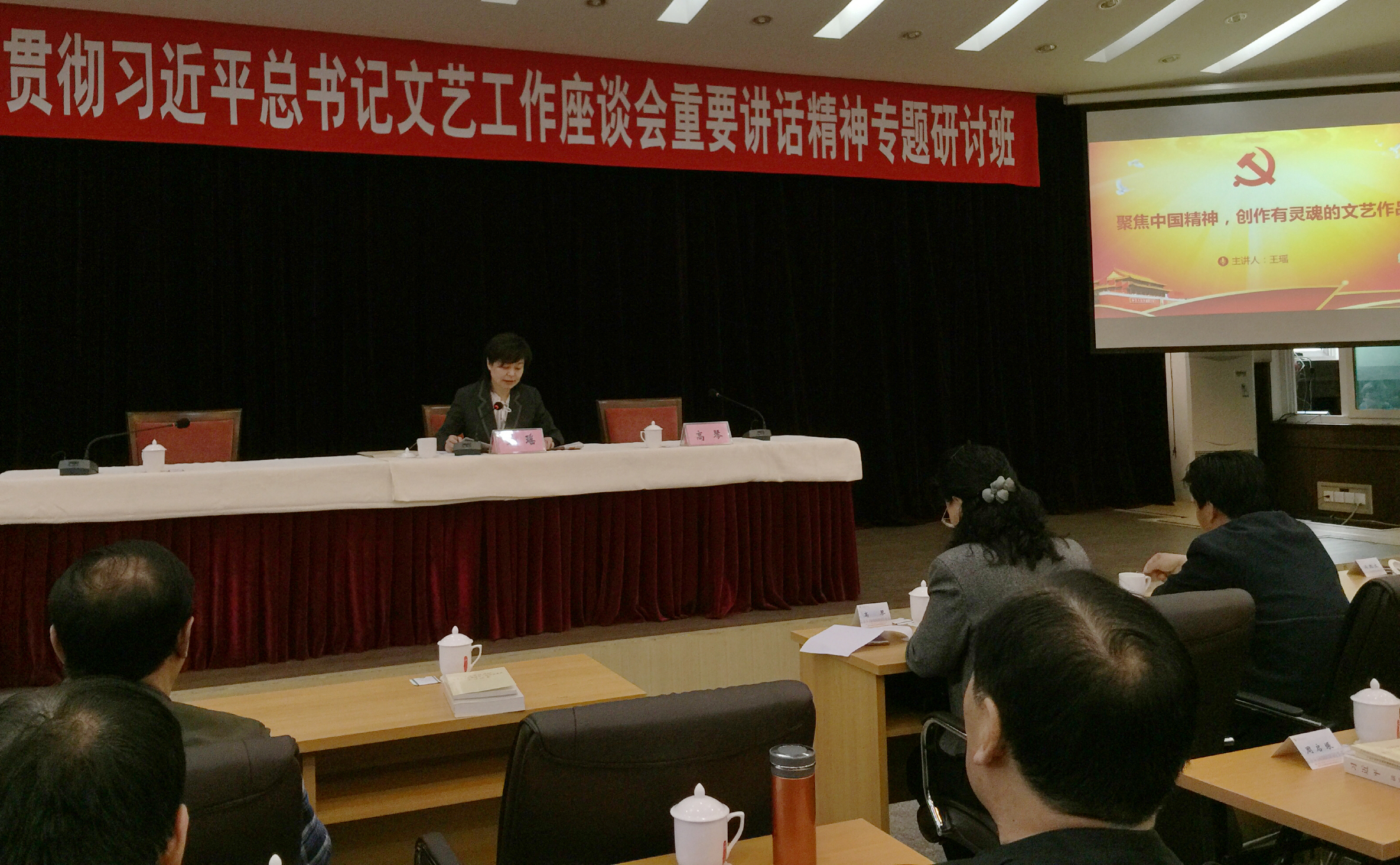 王瑤為學(xué)員們作題為《聚焦中國精神,創(chuàng)作有靈魂的文藝作品》的講座。王瑤指出,文藝之責(zé)是時代前進的號角,文藝之本是創(chuàng)作、生產(chǎn)優(yōu)秀作品,文藝之根是深入人民、服務(wù)人民,文藝之魂是中國精神。王瑤用國內(nèi)外不同門類藝術(shù)家的鮮活事例強調(diào),學(xué)習(xí)總書記的講話精神,文藝工作者要增強使命感、責(zé)任感和緊迫感;要堅持以人民為中心的創(chuàng)作導(dǎo)向;要深入生活,克服浮躁,潛心創(chuàng)作;要把創(chuàng)新精神貫穿在文藝創(chuàng)作的全過程;要大力弘揚中國精神,講好中國故事。