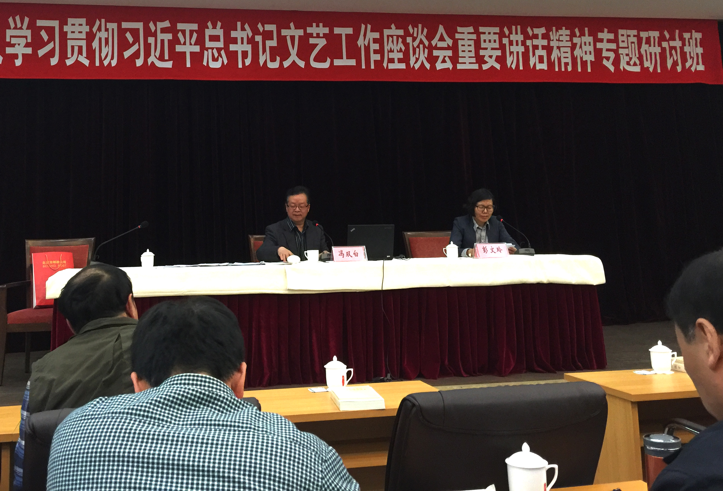 趙實結(jié)合文聯(lián)工作的具體實踐,為學(xué)員作首場專題輔導(dǎo)報告。她指出,要充分認(rèn)識習(xí)近平總書記文藝工作座談會重要講話的重大意義,要準(zhǔn)確把握文藝工作者的時代使命,準(zhǔn)確把握文藝工作者的立身之本,準(zhǔn)確把握文藝創(chuàng)作最根本的方法,準(zhǔn)確把握社會主義文藝的靈魂,準(zhǔn)確把握文藝工作者的道德水準(zhǔn)和職業(yè)操守,準(zhǔn)確把握文聯(lián)組織的新職能、新要求。