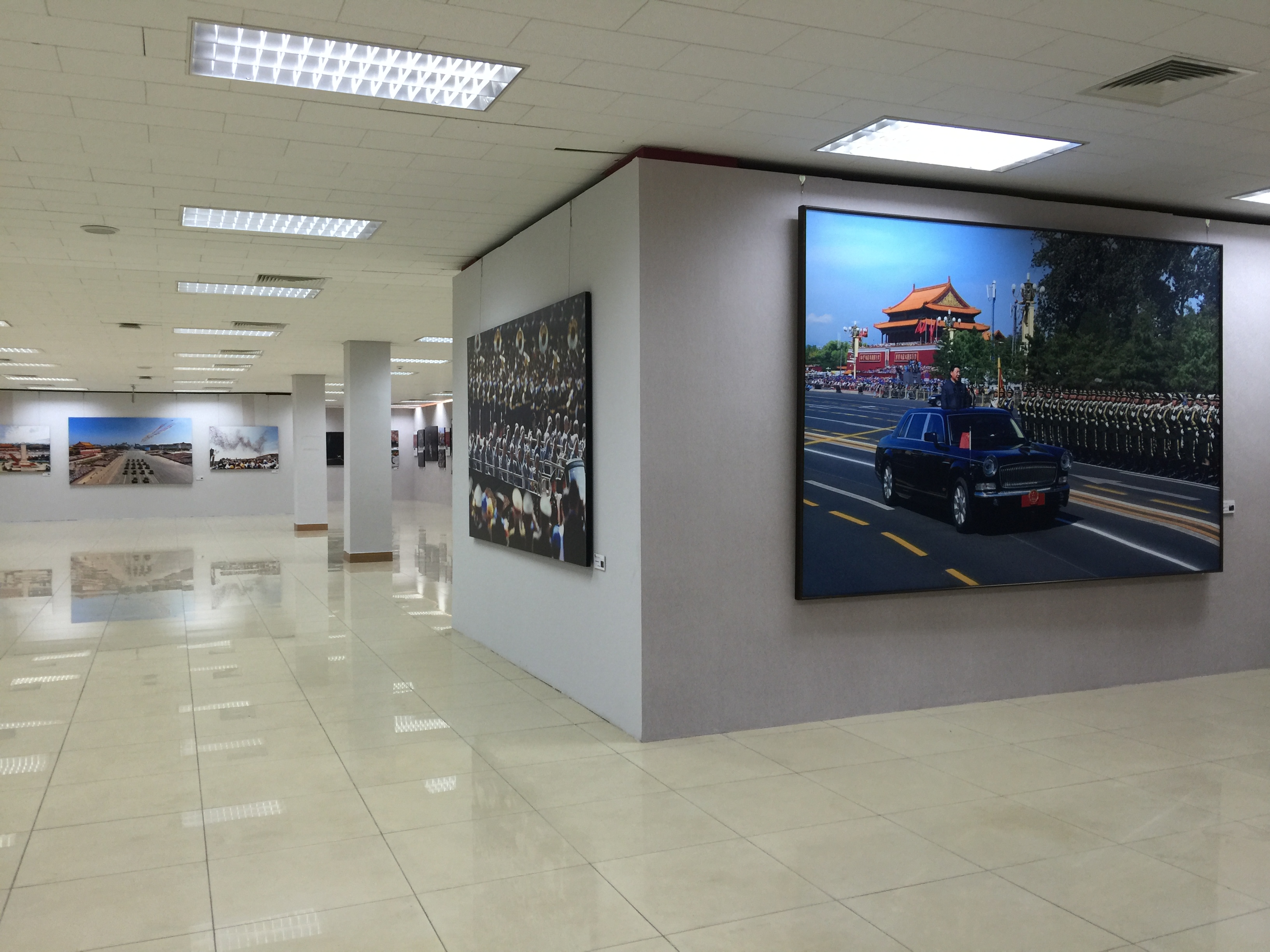 本次展覽展出的作品一部分為于文國、王瑤、王杰、劉應華、劉英毅、李舸、金立旺、居楊、原瑞倫、雷聲等10位著名攝影家在2014年至2015年期間創作的紀實攝影佳作,既有如記錄高鐵建設、大漠深處石油勘探、東北老工業基地振興等重大題材的作品,又有反映科學領域的泰斗,從飛行事業的空軍伉儷和“城市蛙人”等多個領域人物工作、生活的真實場景。另一部分為特約新華社、解放軍報社近40 位攝影工作者在2015年9 月3 日拍攝的天安門廣場盛大閱兵儀式的精彩圖片。展覽作品力求發揮獨特的攝影語言優勢,以豐富的影像表達當下全國多個地區、多個領域的人民群眾對實現“中國夢”的理解和追求。