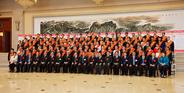 第三屆感動(dòng)中國(guó)的礦工與參加發(fā)布會(huì)的領(lǐng)導(dǎo)合影(高躍冬/攝)