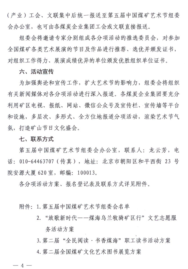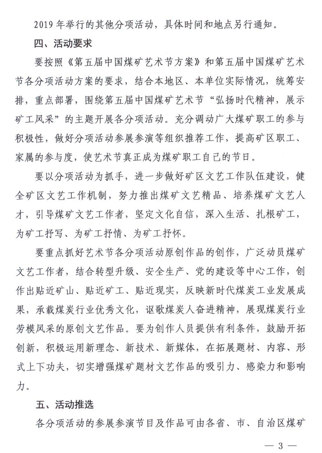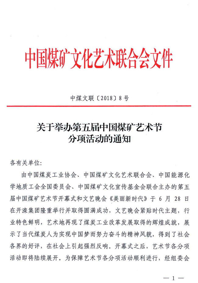 關于舉辦第五屆中國煤礦藝術節分項活動的通知