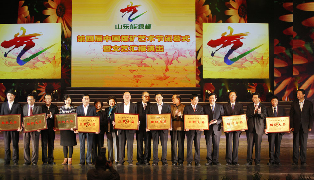 楊元元、李世明、夏潮、白庚勝、劉蘭芳、濮洪九、路耀華、趙岸青、張文祥、黃毅、王俊治、宋元明等領(lǐng)導(dǎo)上臺為第四屆中國煤礦藝術(shù)節(jié)組織大獎獲獎單位頒獎