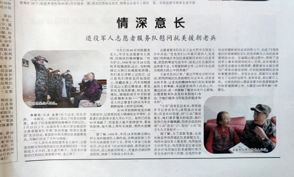 2021年2月22日,黑龍江省雞西市退役軍人事務(wù)局志愿者服務(wù)隊(duì)隊(duì)長(zhǎng)王金光給我來(lái)電話說(shuō),23日要慰問(wèn)走訪2位抗美援朝女兵,請(qǐng)我?guī)椭障唷?/p>