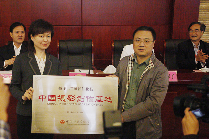 王瑤代表中國攝協授予仁化縣“中國攝影創作基地”牌匾。