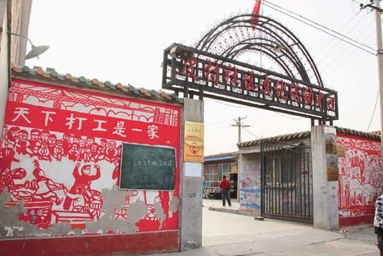 皮村,博物館的落腳地,離北京市中心40多公里,東五環與東六環之間,朝陽區金盞鄉里一個打工人群聚居區。與城市遙遙相望,與農村似是而非。因為處在首都機場飛機航線的下方,這里沒有高樓,也因為航線,村里人慶幸這里逃過了房地產商的垂誕而讓自己有了居所。住進來的打工者日漸增多,不斷擠建的出租屋愈發地參差錯落,與各種工廠以及作坊門臉高矮相間,逼得街道局促,卻也親切、素樸。