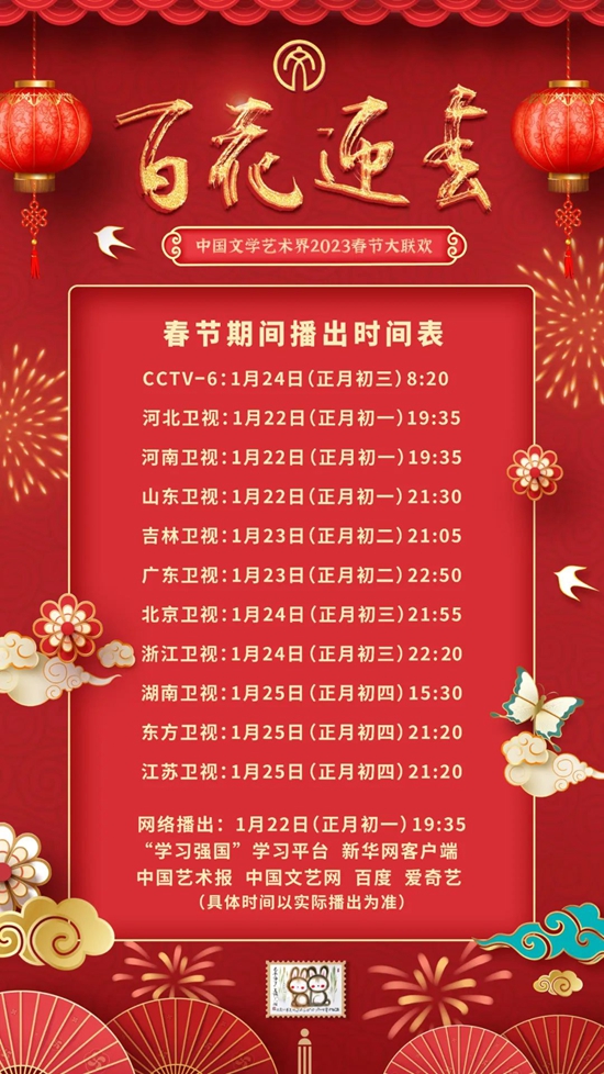 百花迎春——中國文學藝術界2023春節大聯歡播出時間定啦!