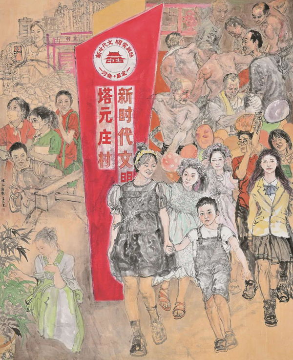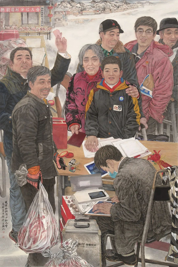 暖陽——決戰脫貧攻堅駱駝灣分紅大會(中國畫) 倪春林