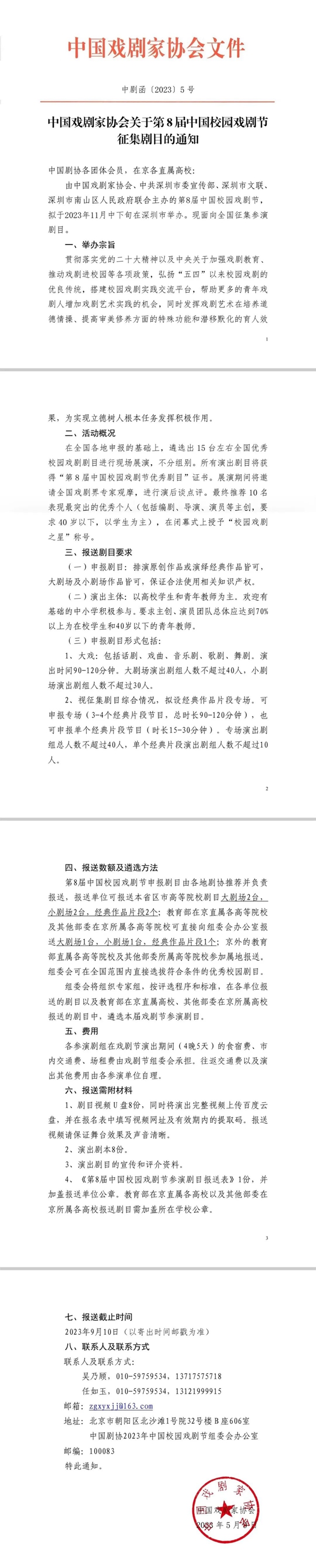 @所有人,第8屆中國校園戲劇節征集劇目啦!