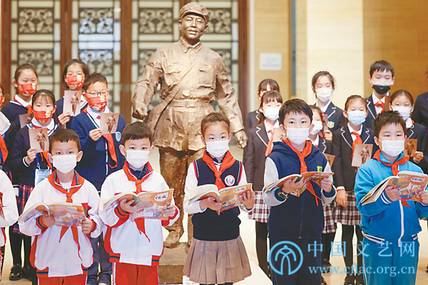 2022年3月5日,少先隊員們在中國美術館齊聲朗誦詩歌《雷鋒叔叔,你在哪里》。