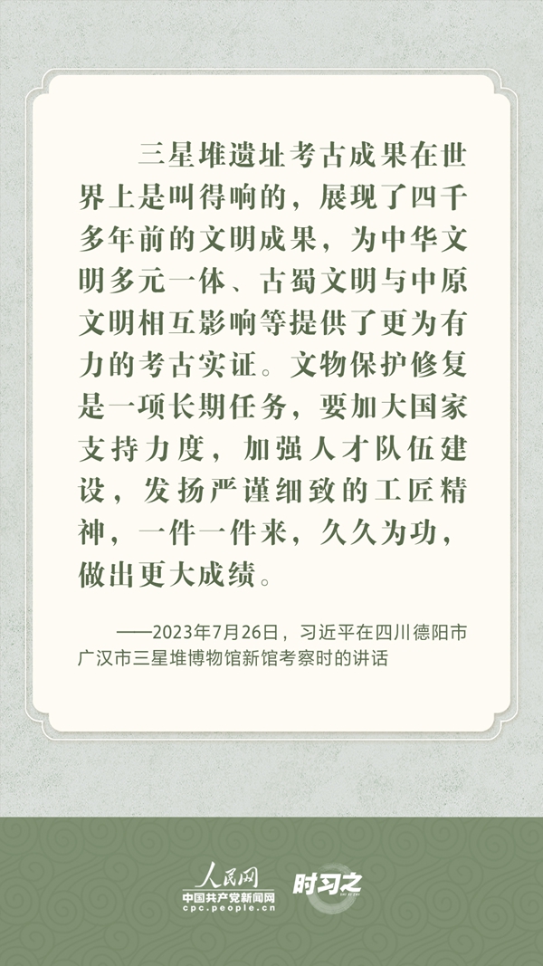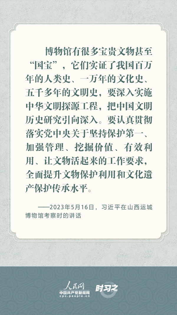 文物承載燦爛文明,傳承歷史文化,維系民族精神。習近平總書記站在中華民族和中華文明永續傳承的戰略高度,不斷強調保護傳承中華優秀傳統文化,為增強文化自信、激發中華優秀傳統文化的生機與活力注入了強大精神動力。