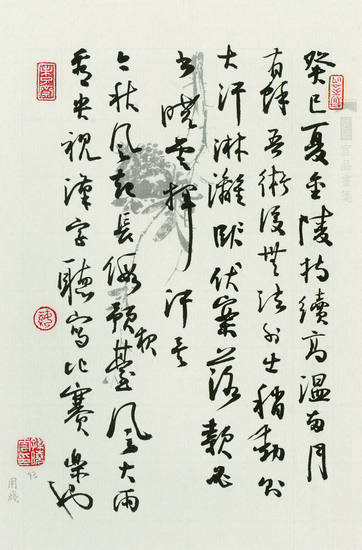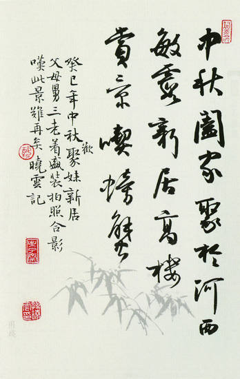 鄭培亮寫濁酒、香煙、商品房,讀來令人會心一笑。漆鋼去重慶龍咀公園、金山公園寫聯,別人準備的不好,遂自寫山鋪秀色,送蔭拂座;水映嵐光,花氣宜人。孫曉云寫癸巳夏,金陵持續高溫兩月有余,吾術后無法外出,稍動則大汗淋漓,伏案落款,必書曉云揮汗矣,又記中秋闔家聚于河西敏露新居,高樓賞景,吃螃蟹等居家瑣事,讀來亦清新可喜。將白話和生活記錄引入書法,進行藝術化的表述,是生活審美化和審美日常化的規律。中國書協副主席言恭達認為,就好像星巴克推出的不只是咖啡,還有對咖啡的體驗一樣,書法也不應只是寫字,而是幾千年傳承的生活方式、生存智慧與感悟。如果書法家陶醉于古董文明、化石文明而不自覺,就缺失了對生活的碰觸和時代的擔當。書法家孟鴻聲說。
