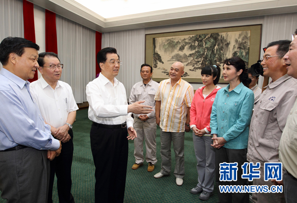 胡錦濤在觀看話劇《郭明義》并接見(jiàn)劇組主創(chuàng)人員時(shí)勉勵(lì)文藝工作者