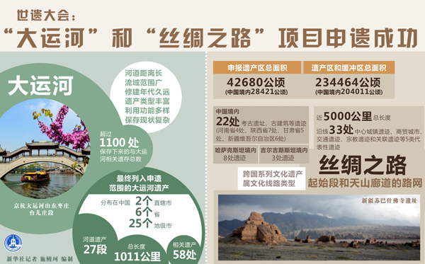 圖表:世遺大會(huì):大運(yùn)河和絲綢之路項(xiàng)目申遺成功