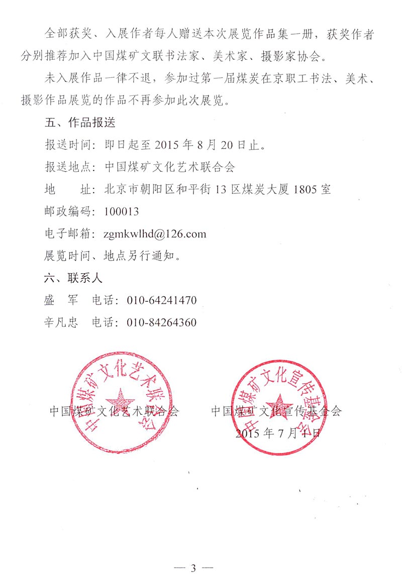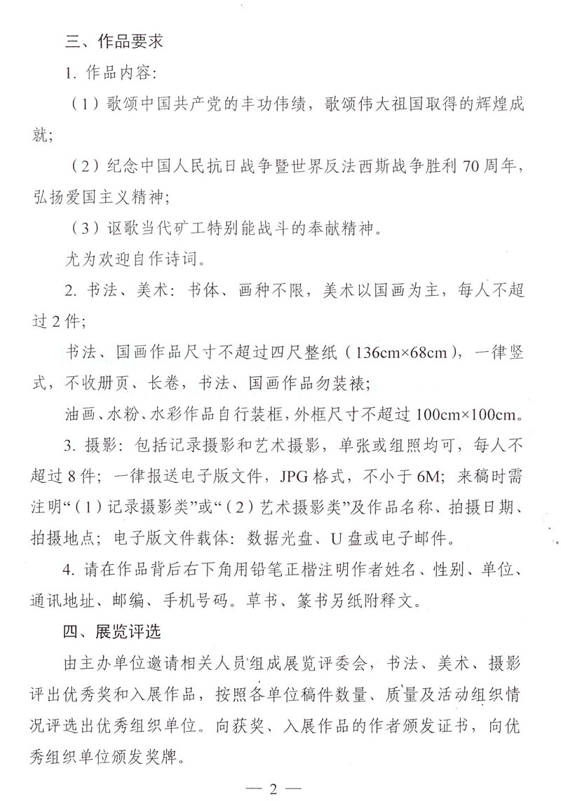 關于舉辦“中國煤科杯·第二屆煤炭在京職工書法、美術、攝影作品展覽”的通知