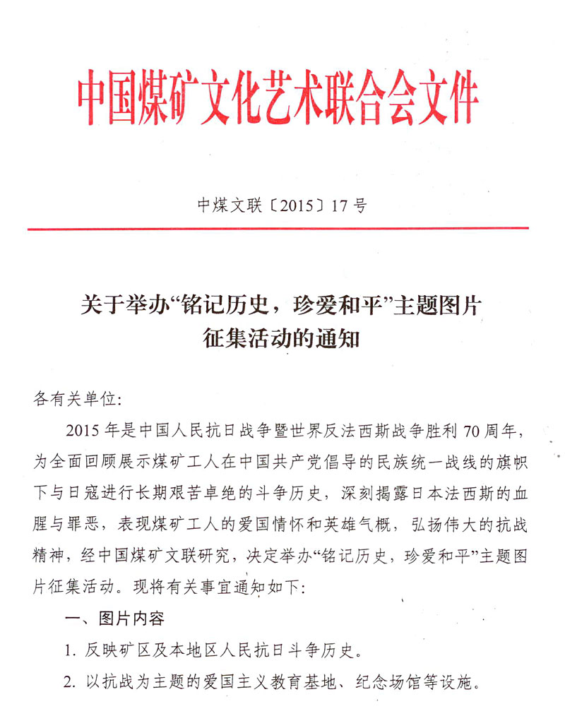 關(guān)于舉辦“銘記歷史,珍愛(ài)和平”主題圖片征集活動(dòng)的通知