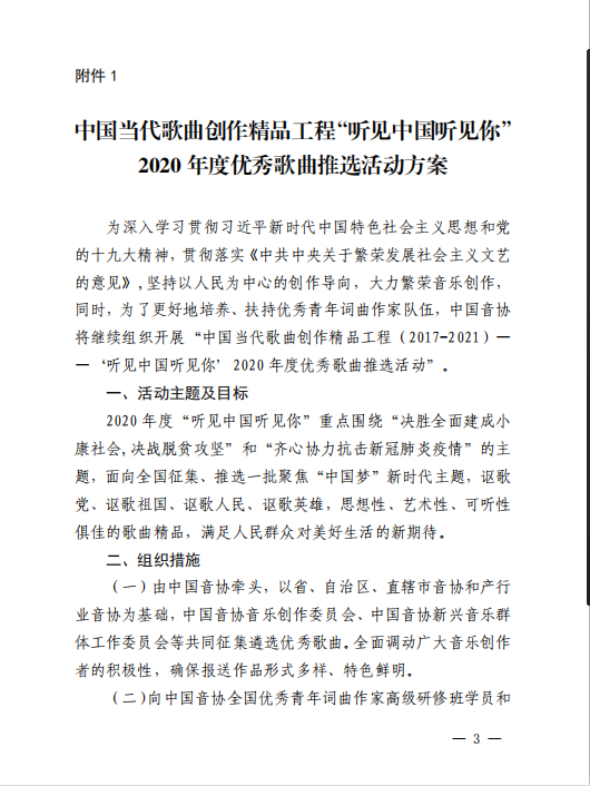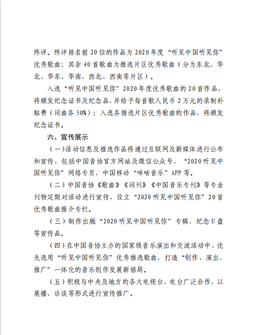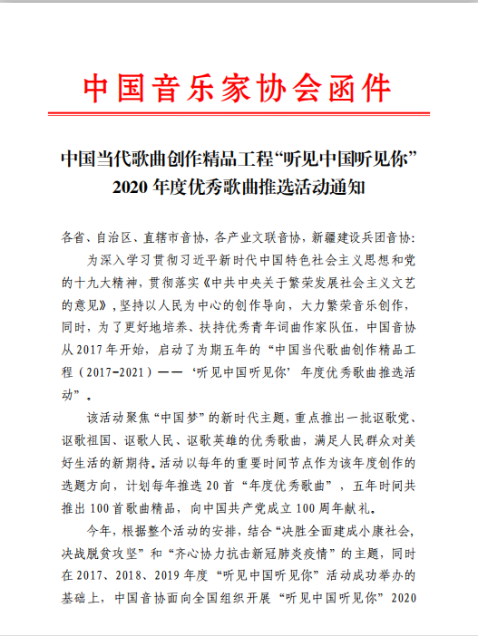 “聽見中國聽見你”2020年度優(yōu)秀歌曲推選活動通知
