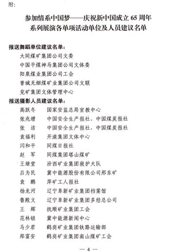 關于組織煤炭系統職工參加情系中國夢——慶祝新中國成立65周年系列展演活動的通知