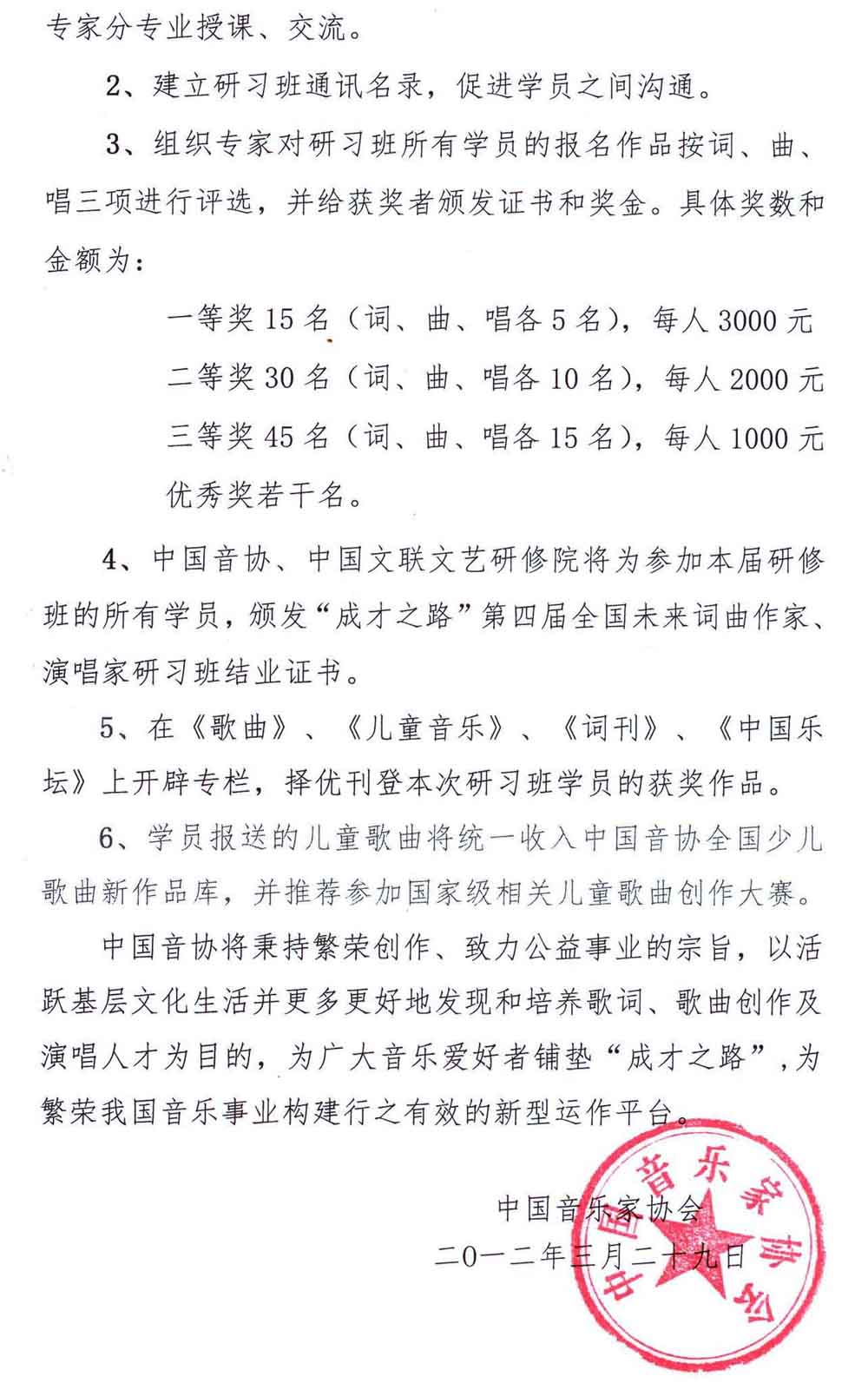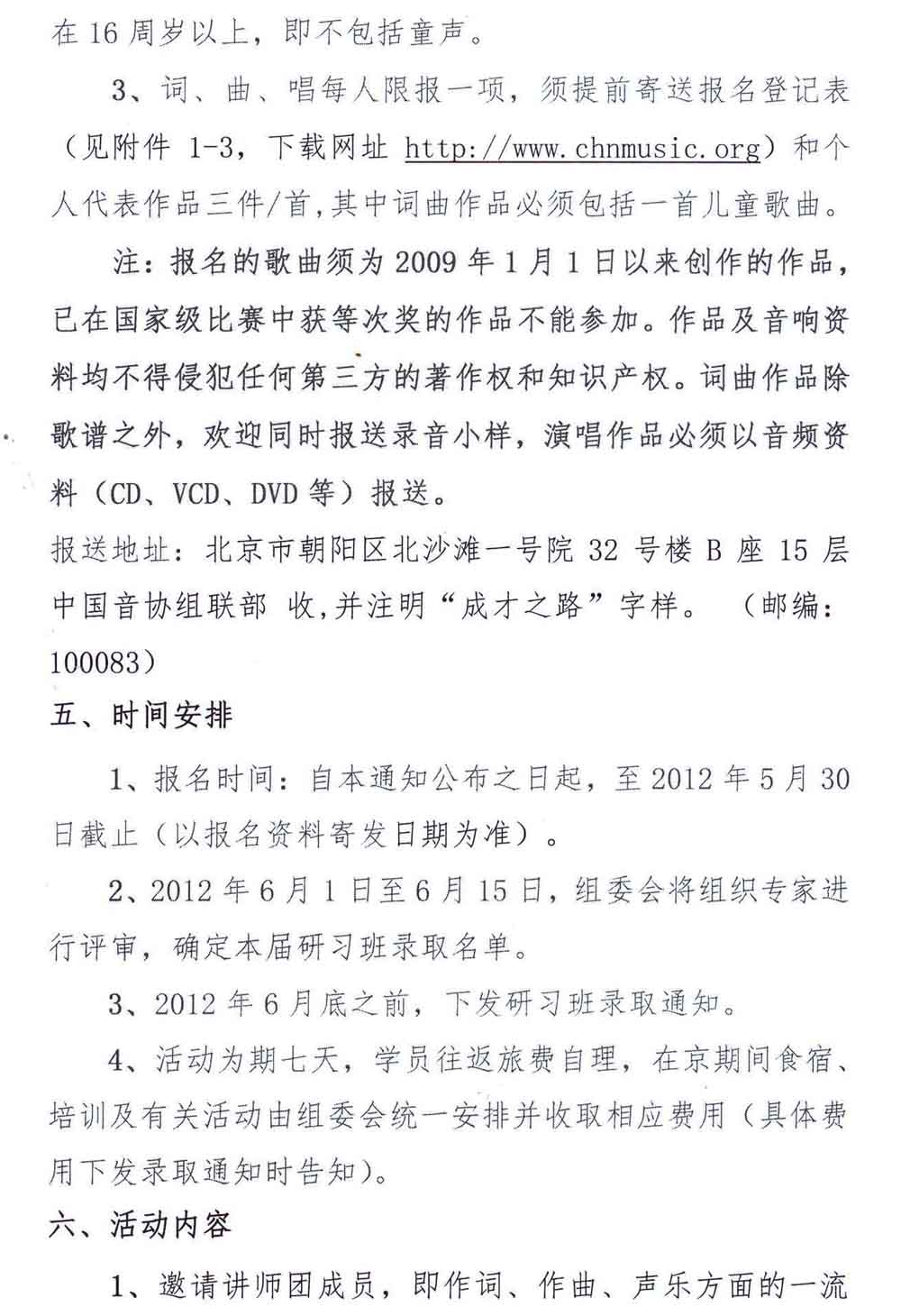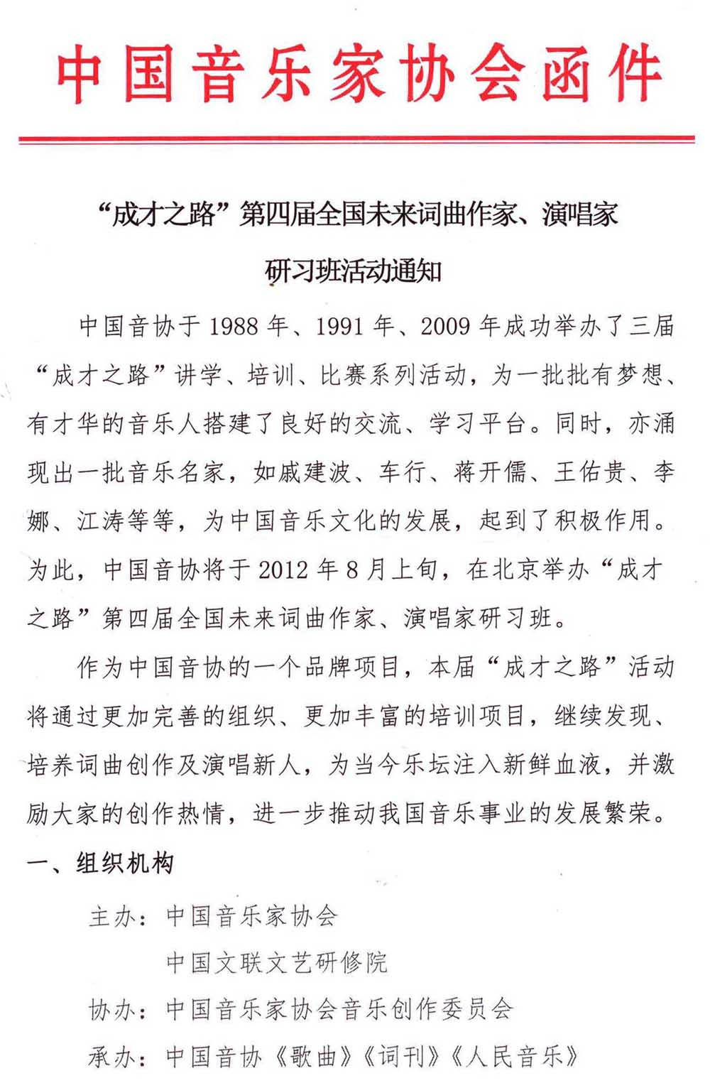 附:《成才之路第四屆全國未來詞曲作家、演唱家研習班活動通知(含報名登記表)》