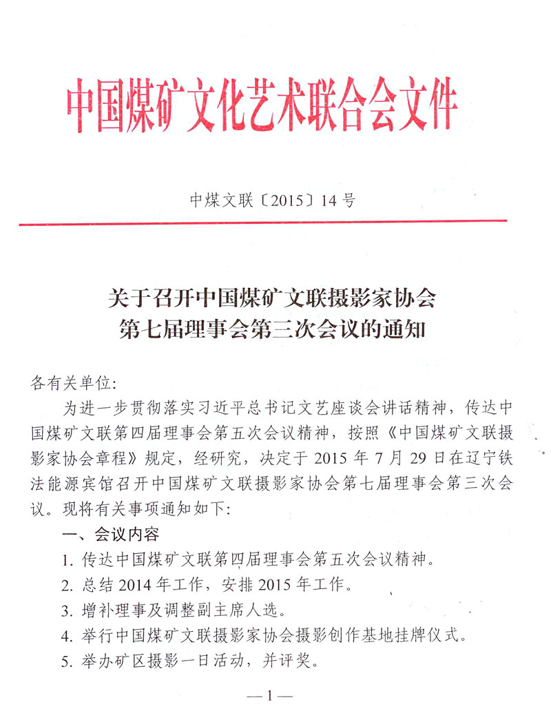關于召開中國煤礦文聯攝影家協會第七屆理事會第三次會議的通知