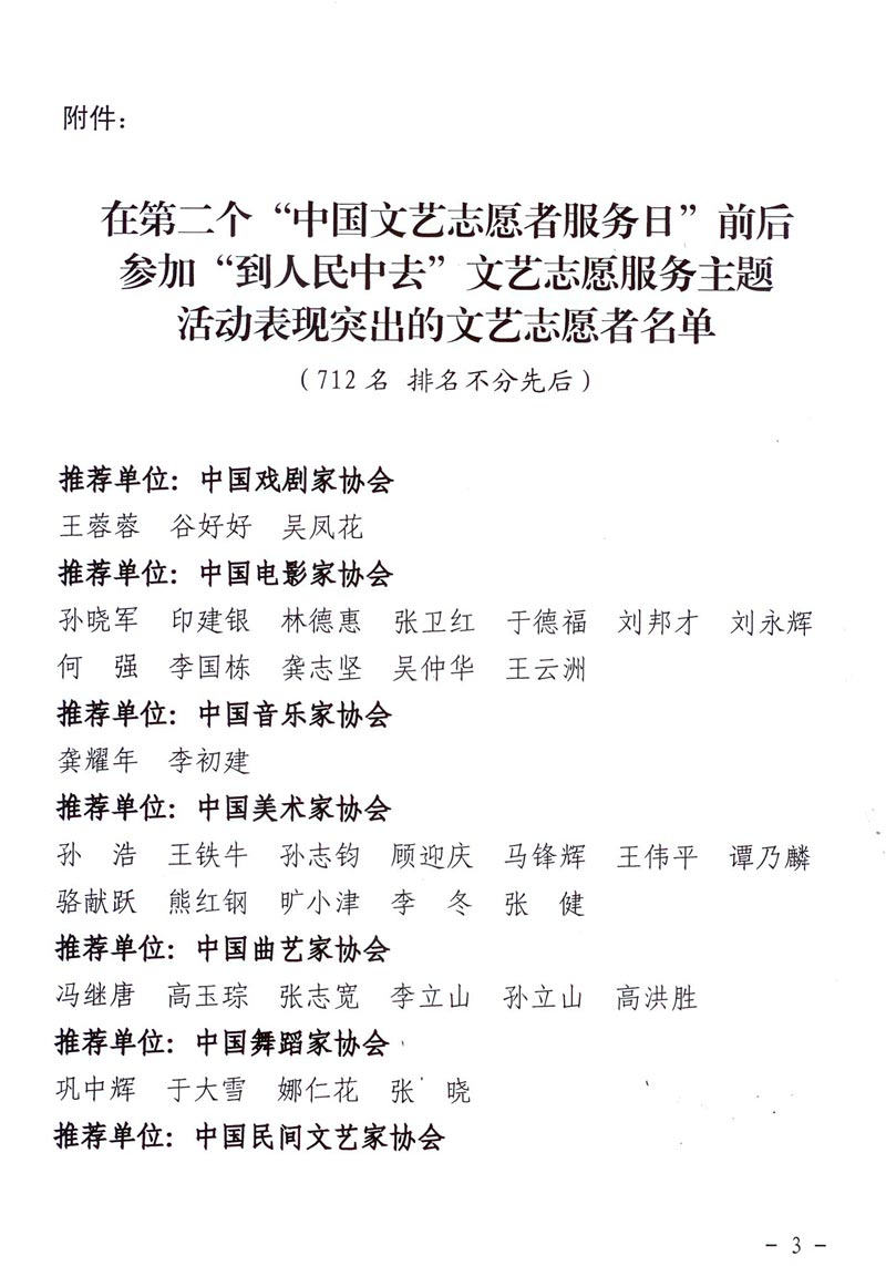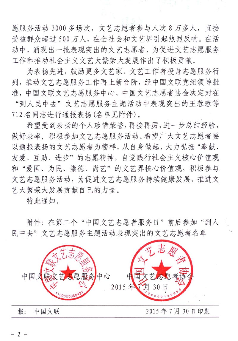 中國文藝志愿者協(xié)會:關于通報表揚“到人民中去”文藝志愿服務主題活動中表現突出的文藝志愿者的通知
