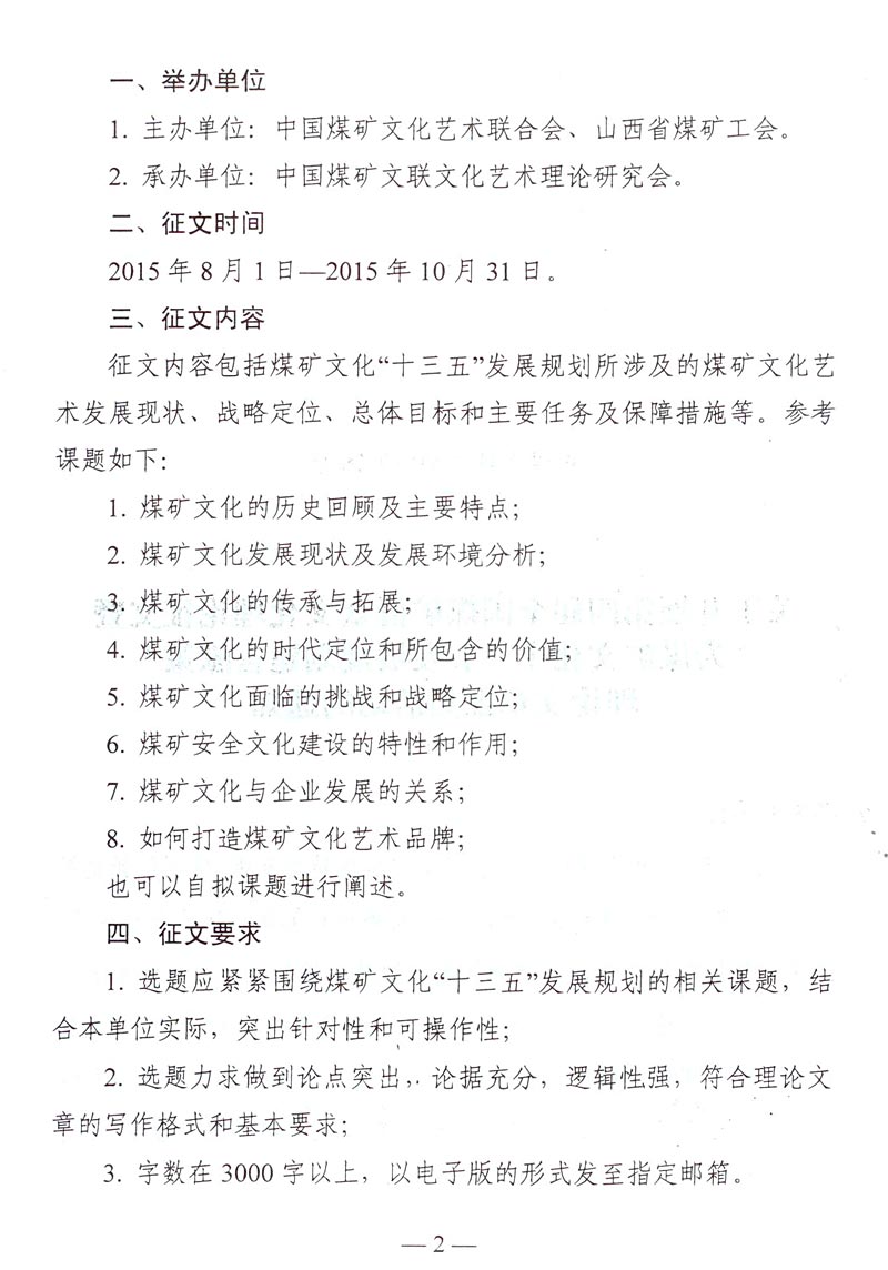 關于開展第四屆全國煤礦群眾文化理論征文暨“為煤礦文化十三五發展規劃建言獻策”理論文章征集活動的通知