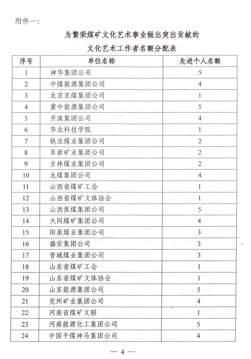 關于籌備召開中國煤礦文聯成立20周年座談會暨推選為繁榮煤礦文化藝術事業做出突出貢獻的文化藝術工作者的通知 來源: 作者: 時間:2015-10-30 【字體:小 大】 附件一:為繁榮煤礦文化藝術事業做出突出貢獻的文化藝術工作者名額分配表 附件二:為繁榮煤礦文化藝術事業做出突出貢獻的文化藝術工作者推薦表 智能標簽: 煤礦文聯 工作者 相關內容 分享到: 【打印正文】
