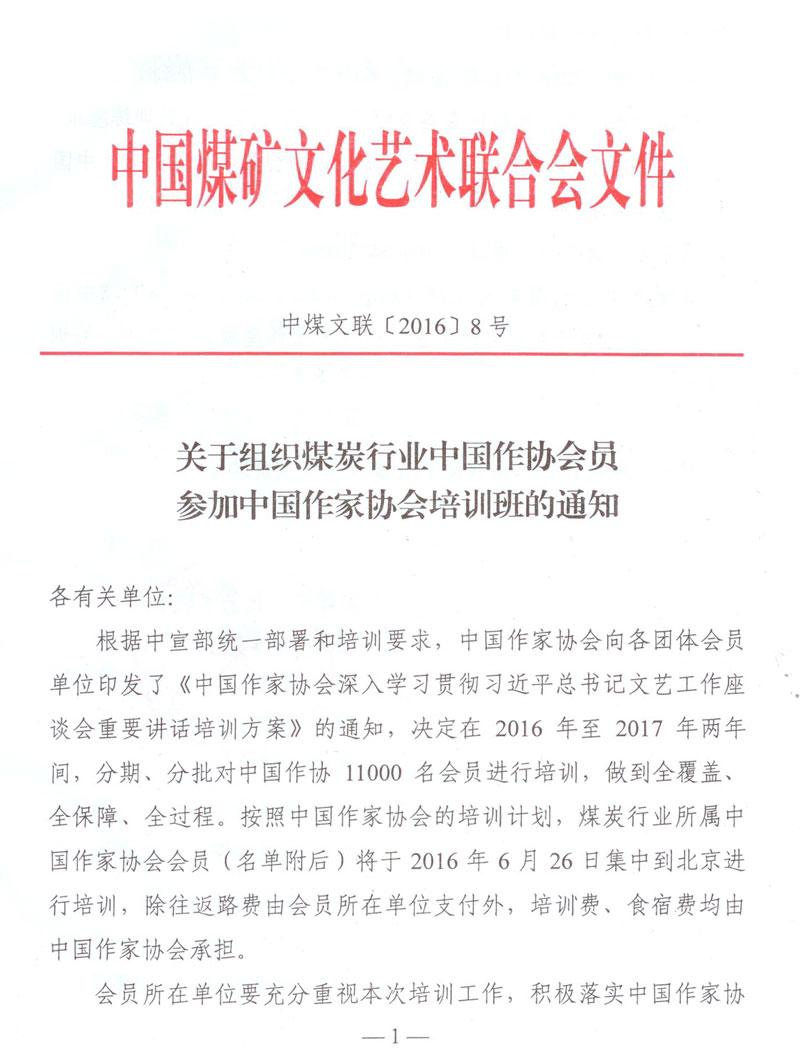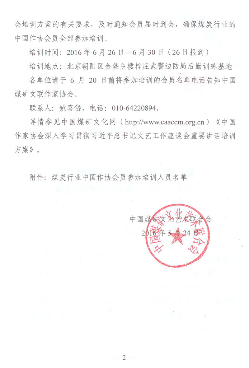 關于組織煤炭行業中國作協會員參加中國作家協會培訓班的通知 來源:中國煤礦文聯 作者: 時間:2016-06-01 【字體:小 大】 附件:煤炭行業中國作協會員參加培訓人員名單 中國作家協會深入學習貫徹習近平總書記文藝工作座談會重要講話培訓方案 智能標簽: 中國作家協會 相關內容 分享到: 【打印正文】