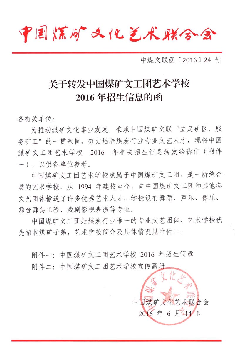 關于轉發中國煤礦文工團藝術學校2016年招生信息的函