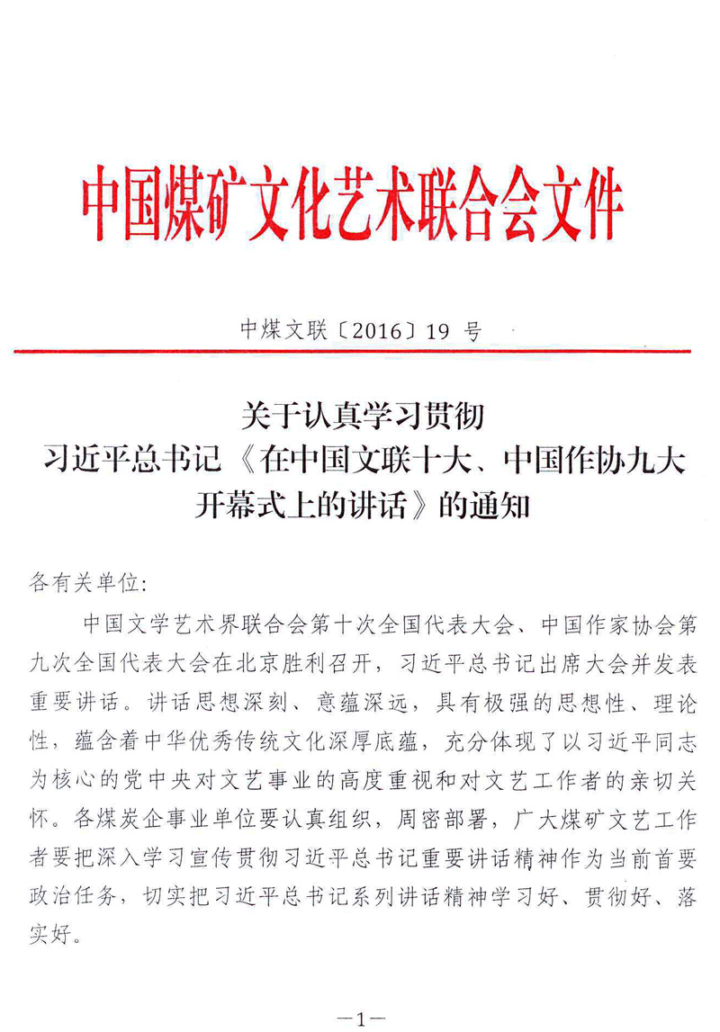 關于認真學習貫徹習近平總書記 《在中國文聯十大、中國作協九大開幕式上的講話》的通知