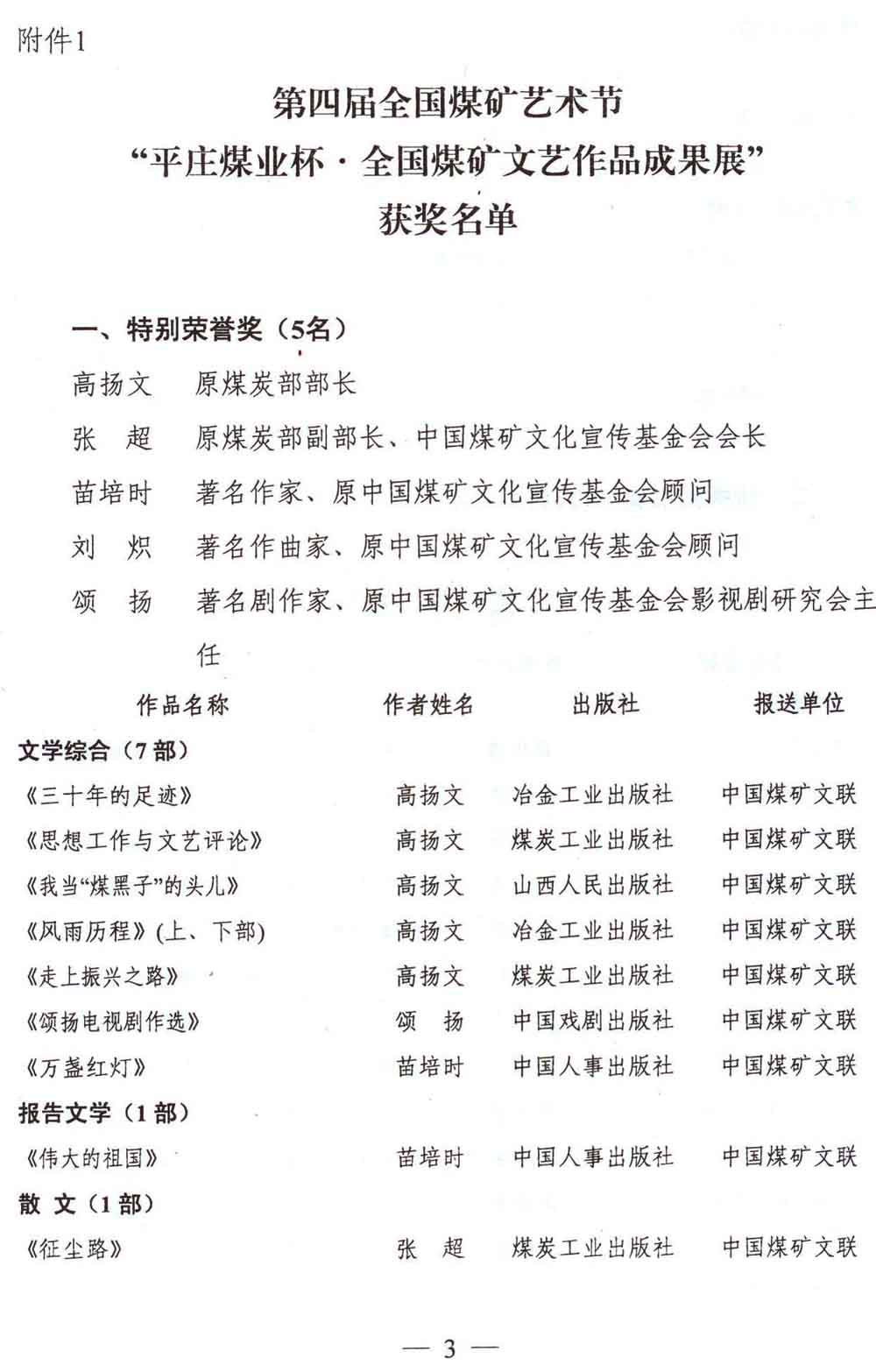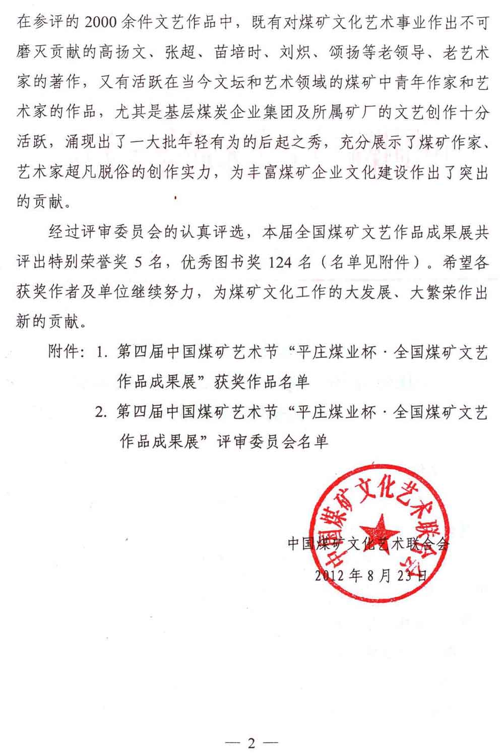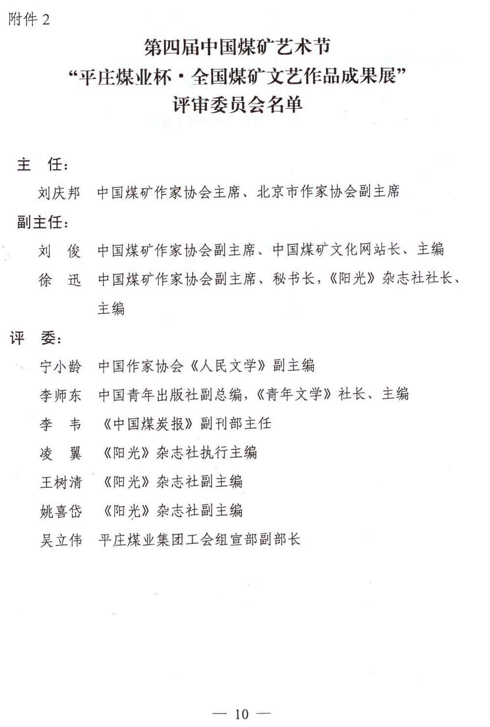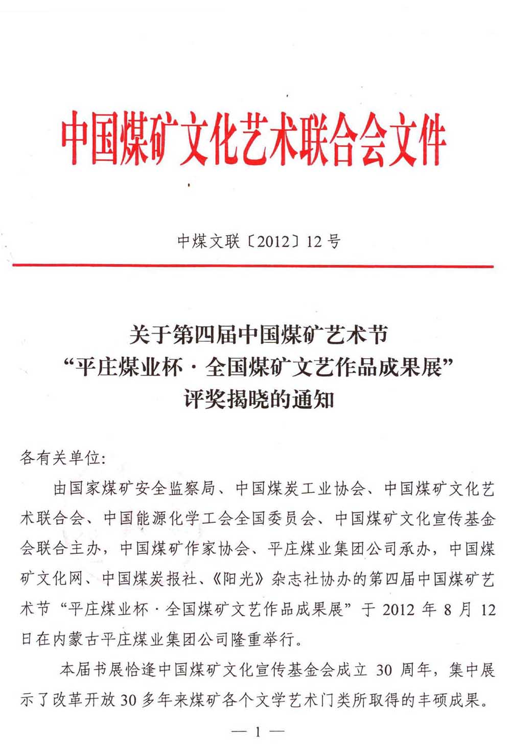 關于第四屆中國煤礦藝術節“平莊煤業杯·全國煤礦文藝作品成果展”評獎揭曉的通知