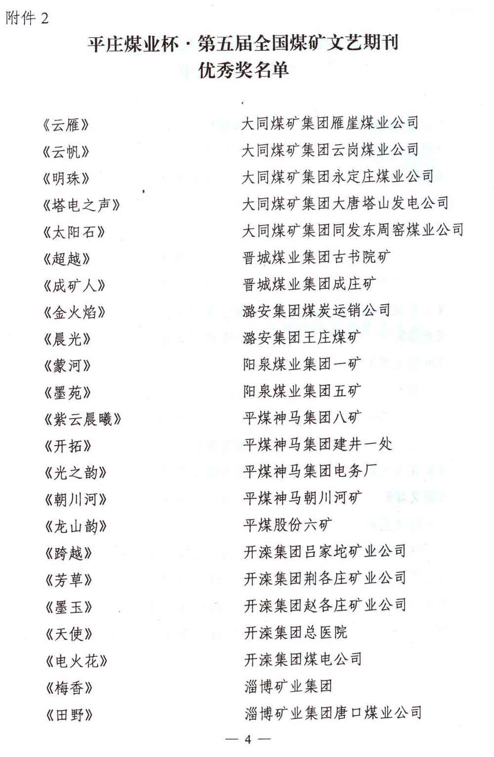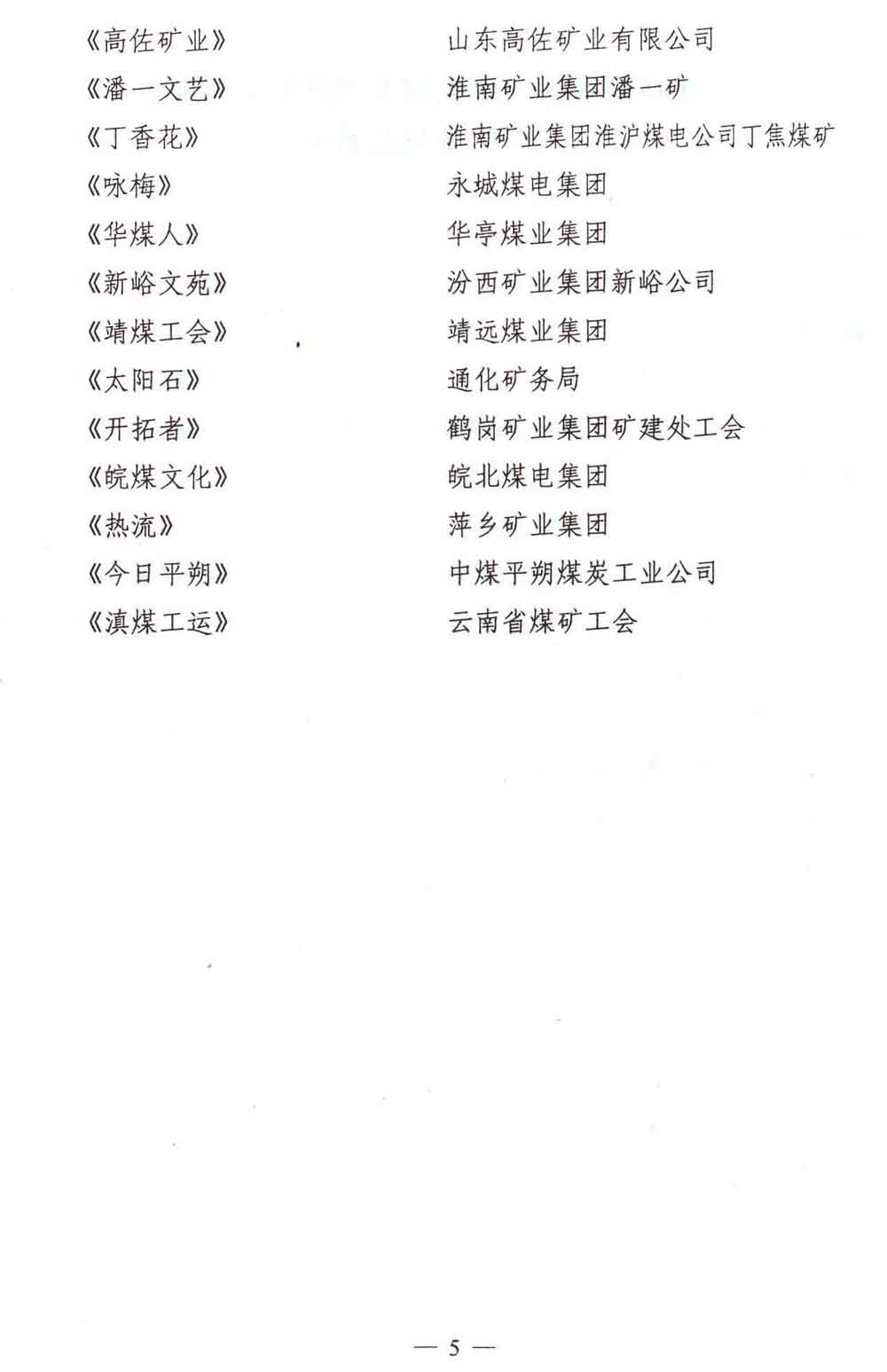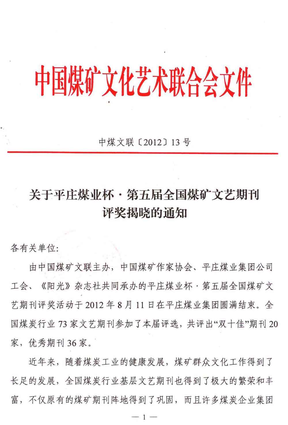 關于平莊煤業杯·第五屆全國煤礦文藝期刊評獎揭曉的通知
