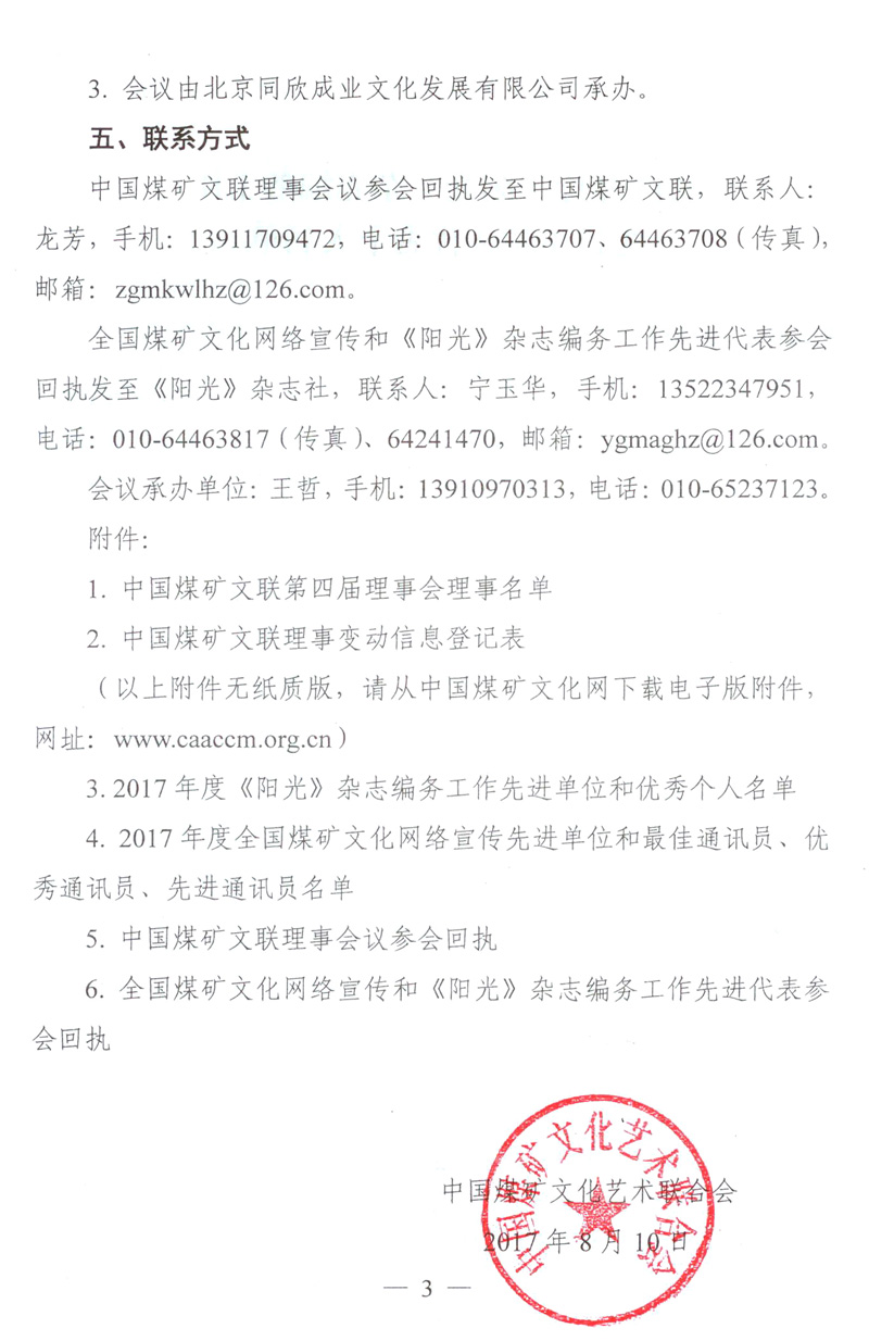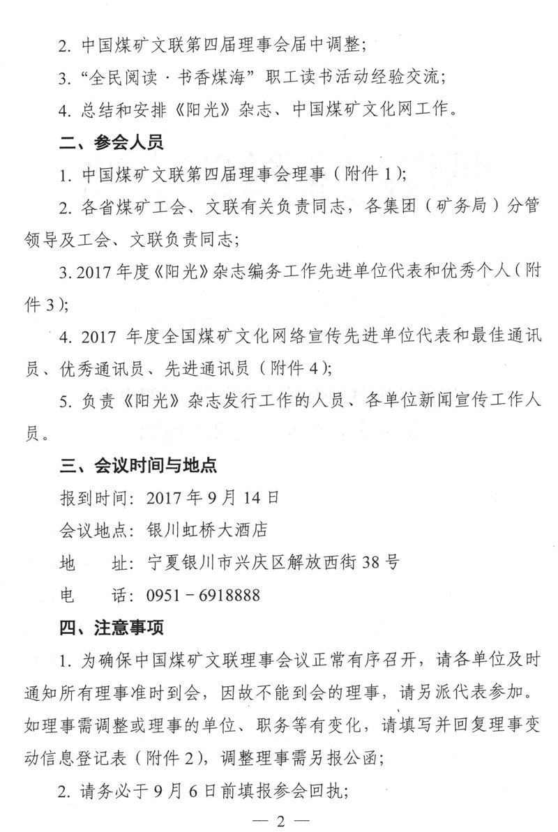 關于召開中國煤礦文聯第四屆理事會第八次(擴大)會議的通知 來源:中國煤礦文聯 作者: 時間:2017-08-14 【字體:小 大】 附件: 1. 中國煤礦文聯第四屆理事會理事名單 2. 中國煤礦文聯理事變動信息登記表 3.2017年度《陽光》雜志編務工作先進單位和優秀個人名單 4. 2017年度全國煤礦文化網絡宣傳先進單位和最佳通訊員、優秀通訊員、先進通訊員名單 5. 中國煤礦文聯理事會議參會回執 6. 全國煤礦文化網絡宣傳和《陽光》雜志編務工作先進代表參會回執 智能標簽: 中國煤礦文聯 相關內容 分享到: 【打印正文】