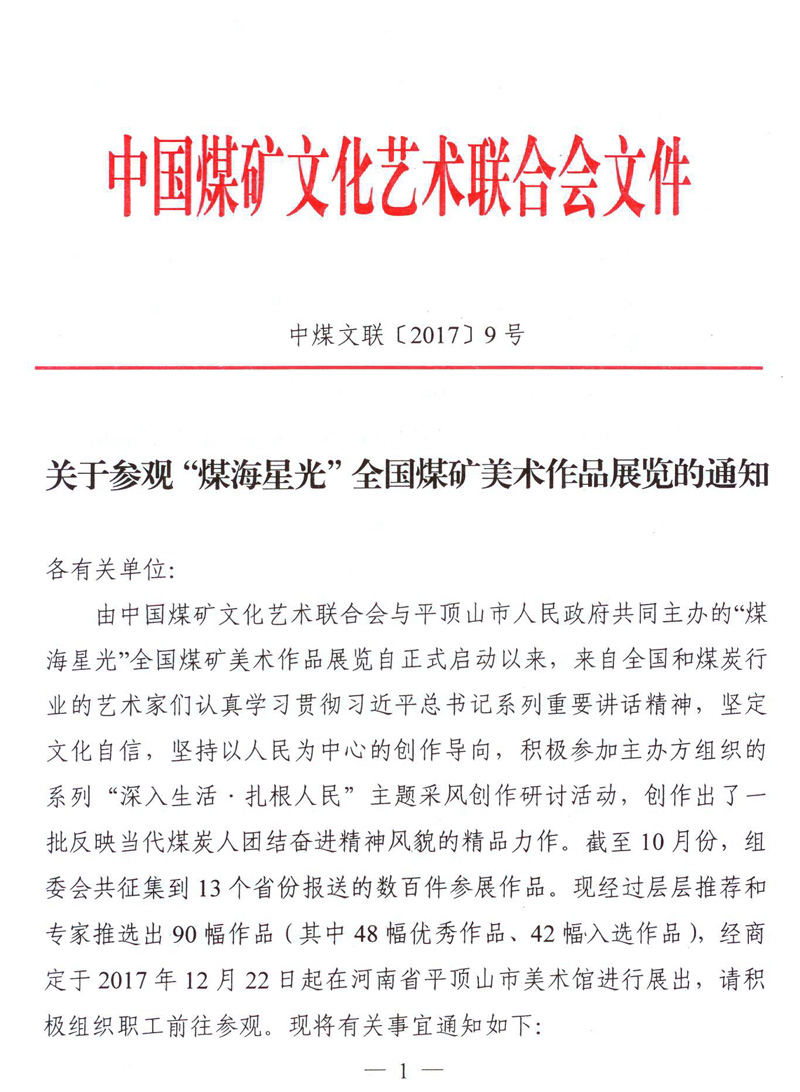 關(guān)于參觀“煤海星光”全國(guó)煤礦美術(shù)作品展覽的通知 來(lái)源:中國(guó)煤礦文聯(lián) 作者: 時(shí)間:2017-12-13 【字體:小 大】 附件:1.“煤海星光”全國(guó)煤礦美術(shù)作品展覽優(yōu)秀作品名單 2.“煤海星光”全國(guó)煤礦美術(shù)作品展覽入選作品名單 3.“煤海星光”全國(guó)煤礦美術(shù)作品展覽優(yōu)秀組織單位 智能標(biāo)簽: 中國(guó)煤礦文聯(lián) 相關(guān)內(nèi)容 分享到: 【打印正文】