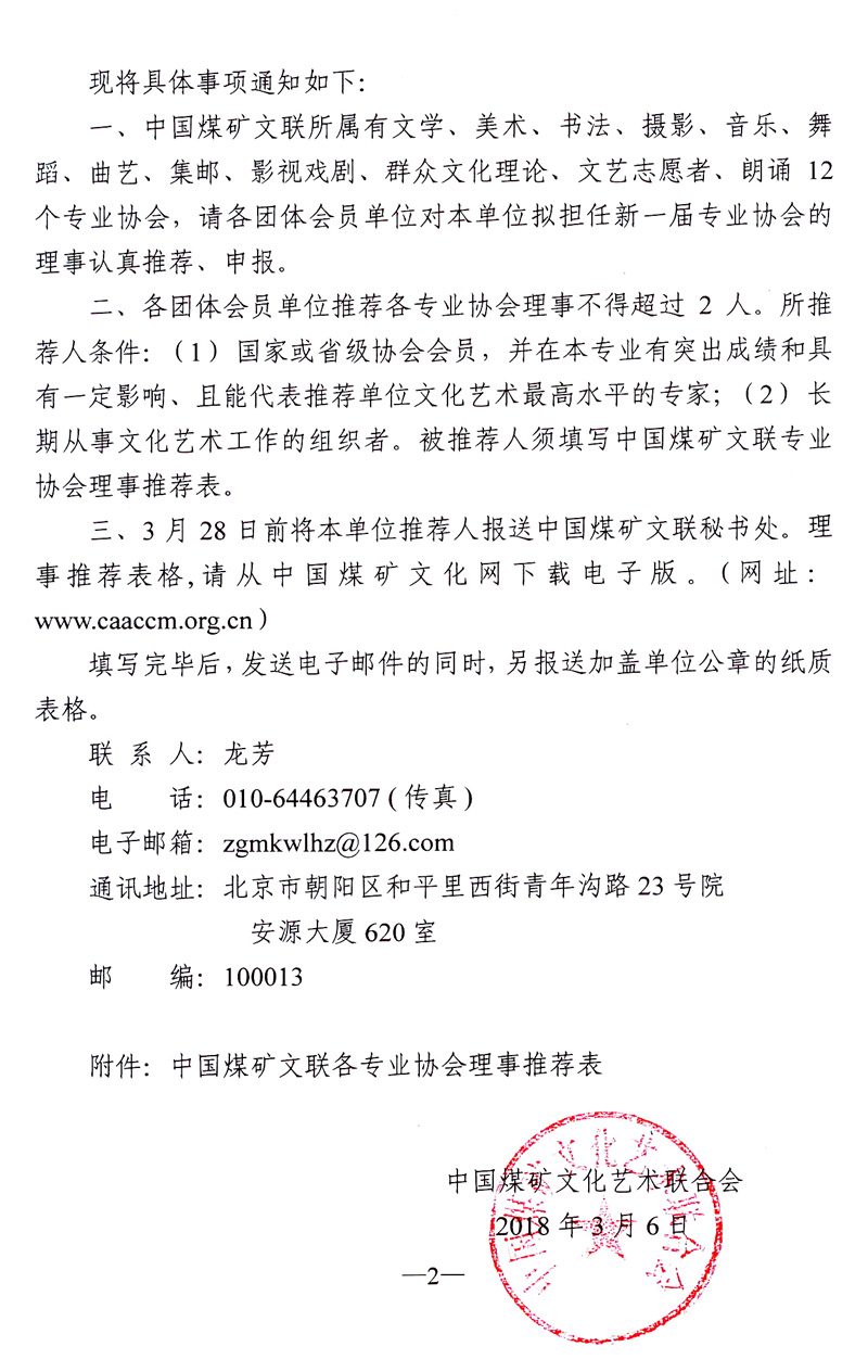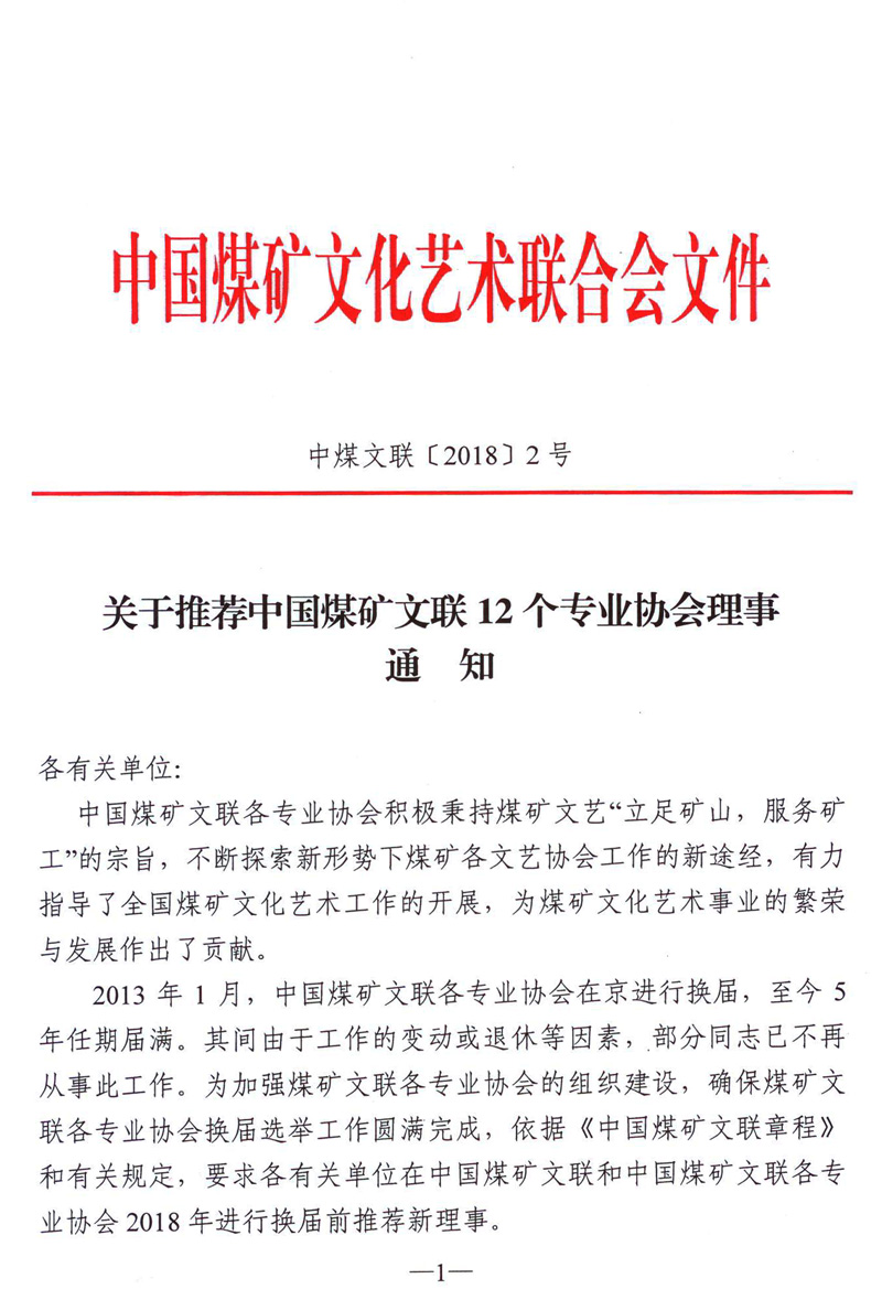 關于推薦中國煤礦文聯12個專業協會理事的通知