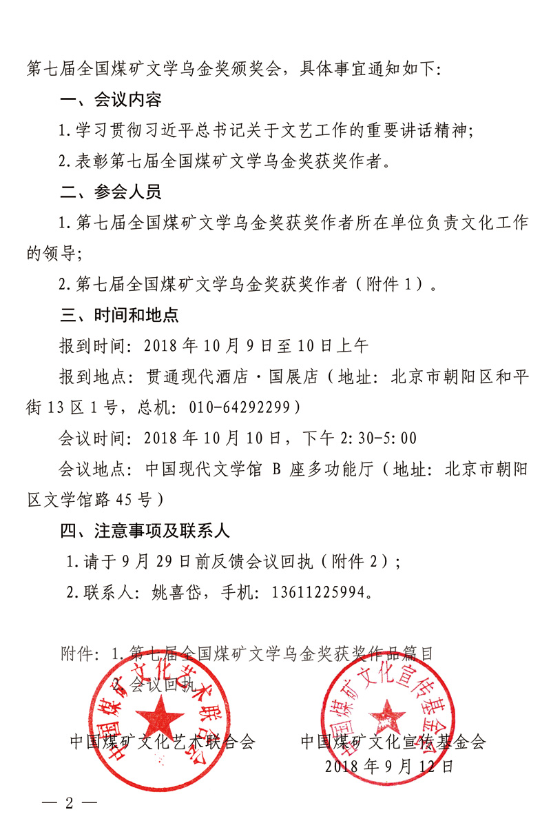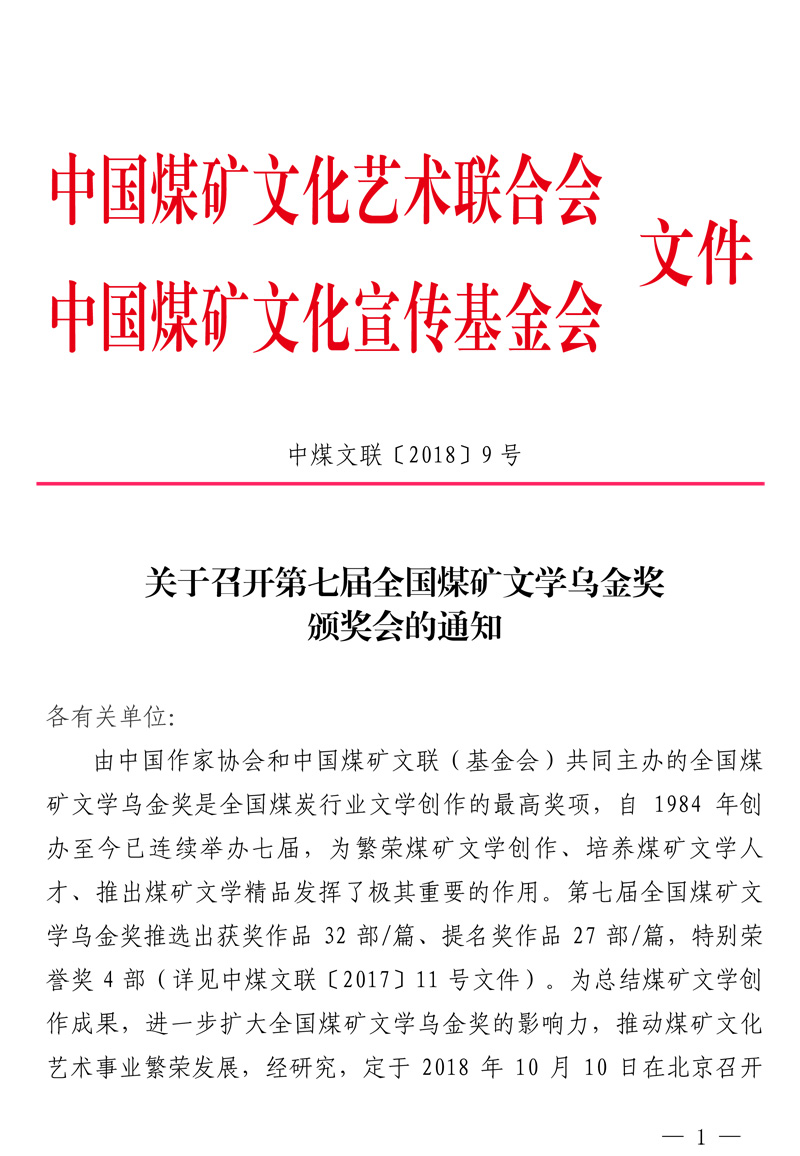 關(guān)于召開第七屆全國煤礦文學烏金獎頒獎會的通知