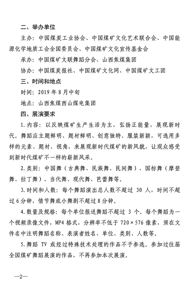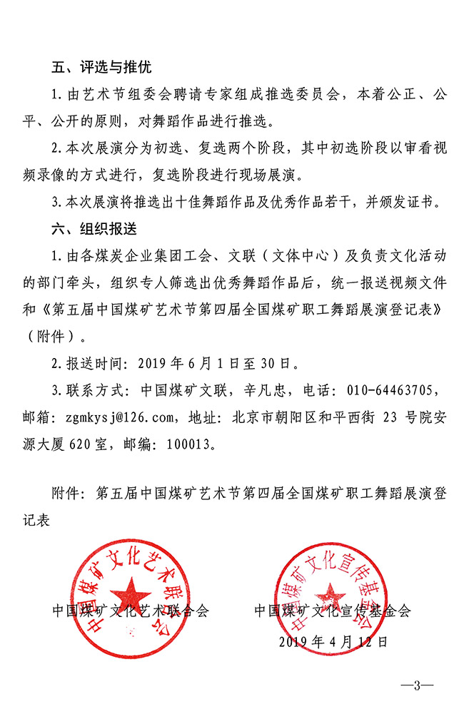 關于舉辦第四屆全國煤礦職工舞蹈展演的通知 來源:中國煤礦文聯 作者: 時間:2019-04-17 【字體:小 大】 附件:關于舉辦第五屆中國煤礦藝術節第四屆全國煤礦職工舞蹈展演的通知(PDF版)第五屆中國煤礦藝術節第四屆全國煤礦職工舞蹈展演登記表 智能標簽: 中國煤礦文聯 相關內容 分享到: 【打印正文】