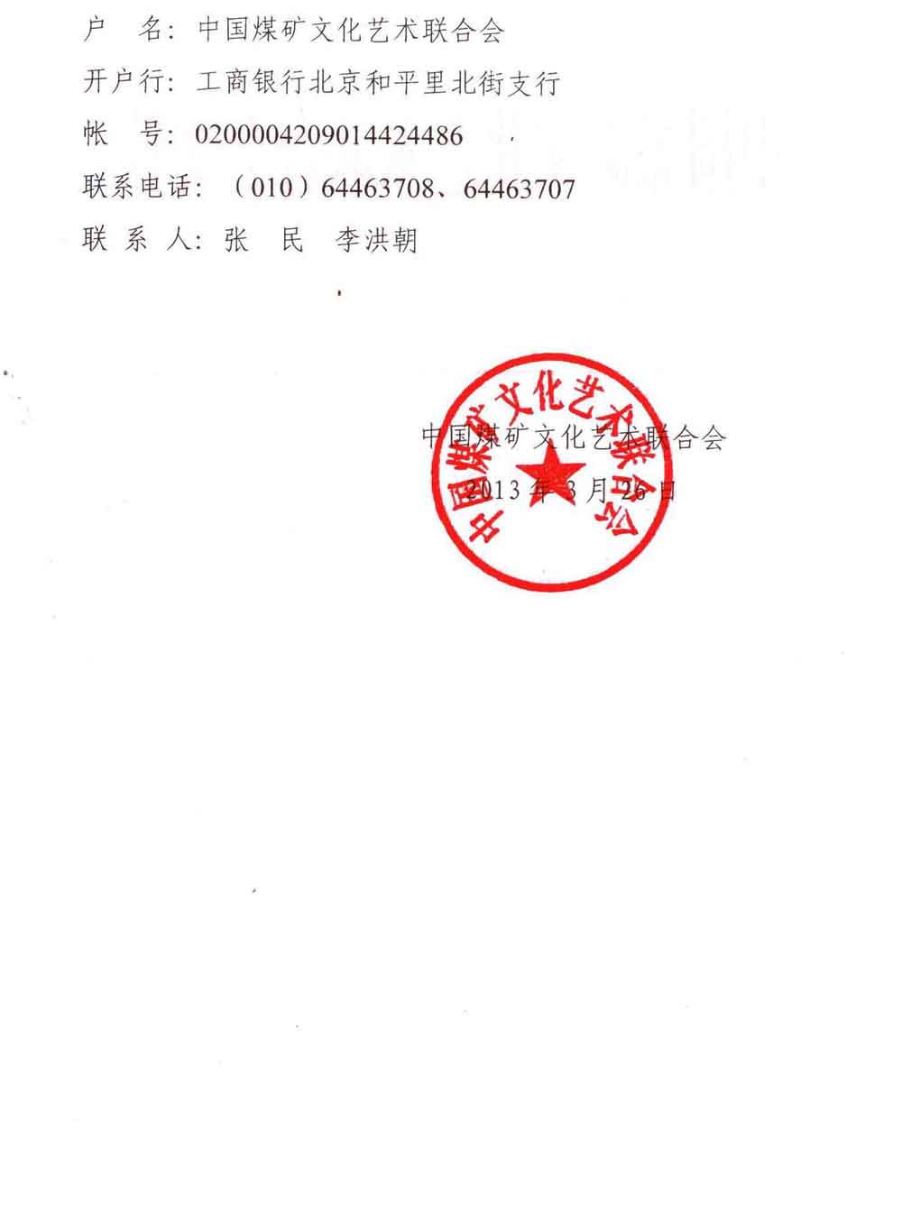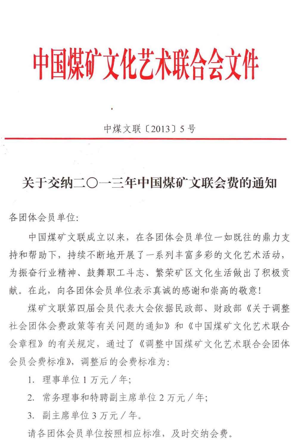關(guān)于交納二〇一三年中國煤礦文聯(lián)會費的通知