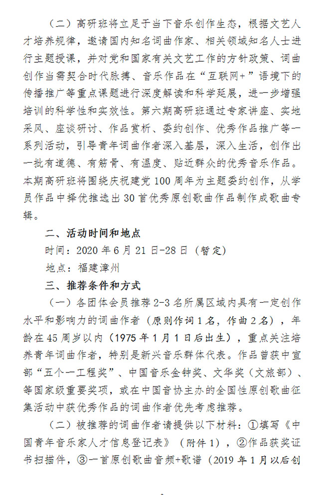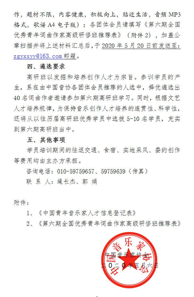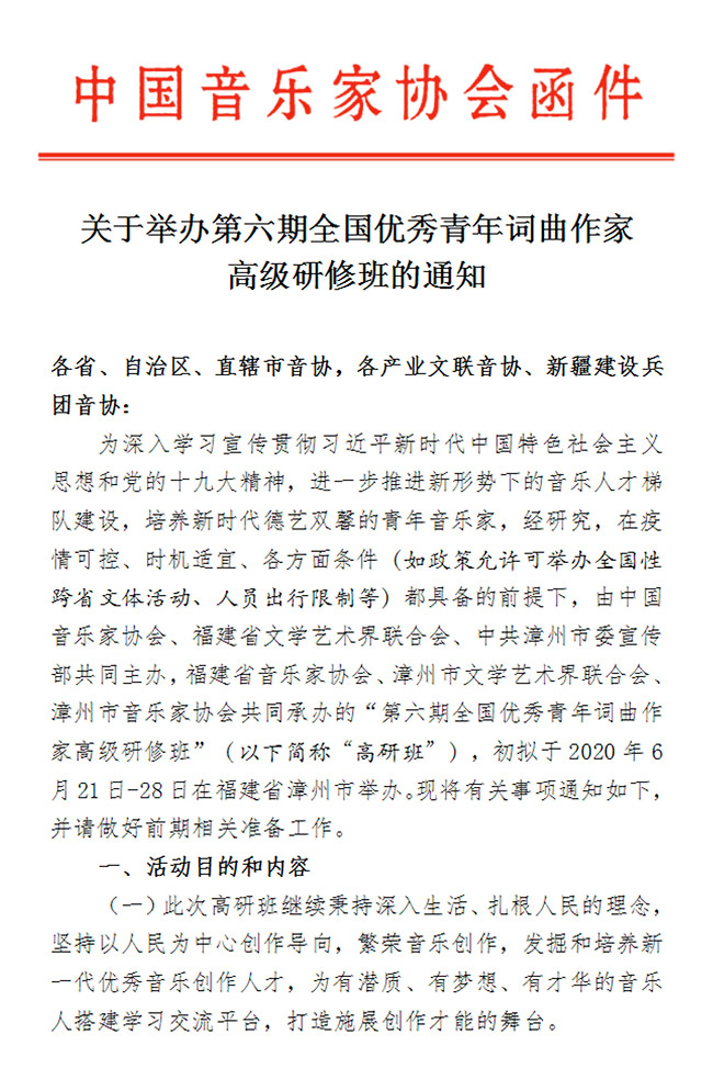 中國音協:關于舉辦第六期全國優秀青年詞曲作家高級研修班的通知