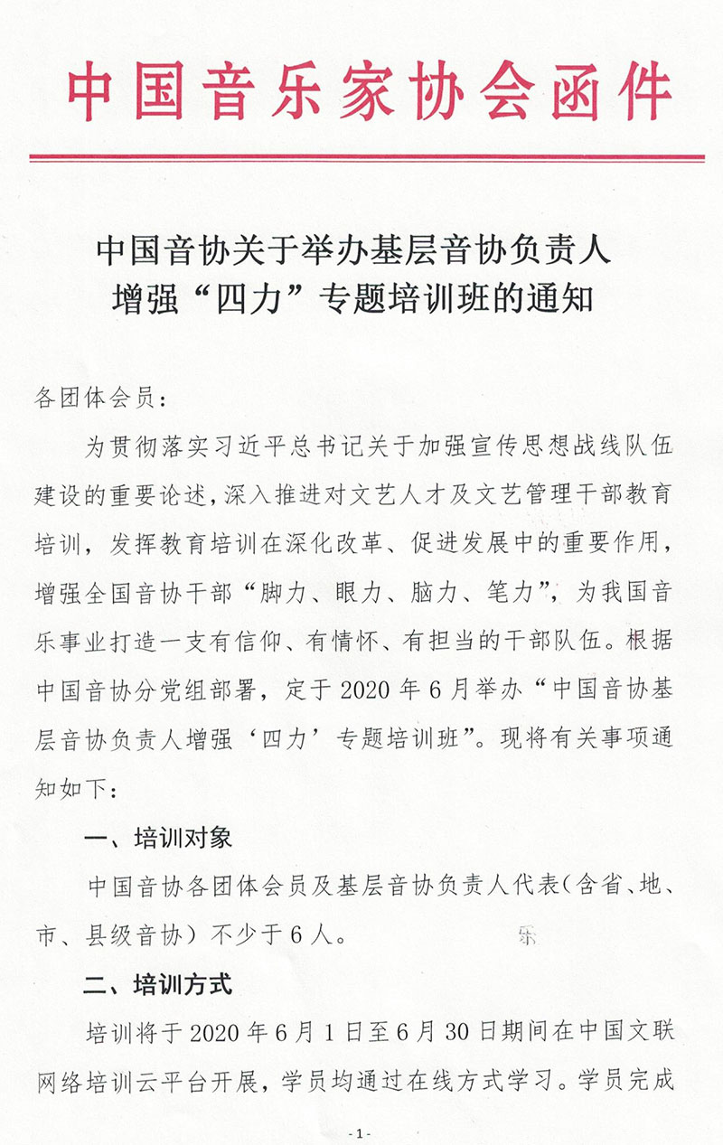 中國音協:關于舉辦基層音協負責人增強“四力”專題培訓班的通知